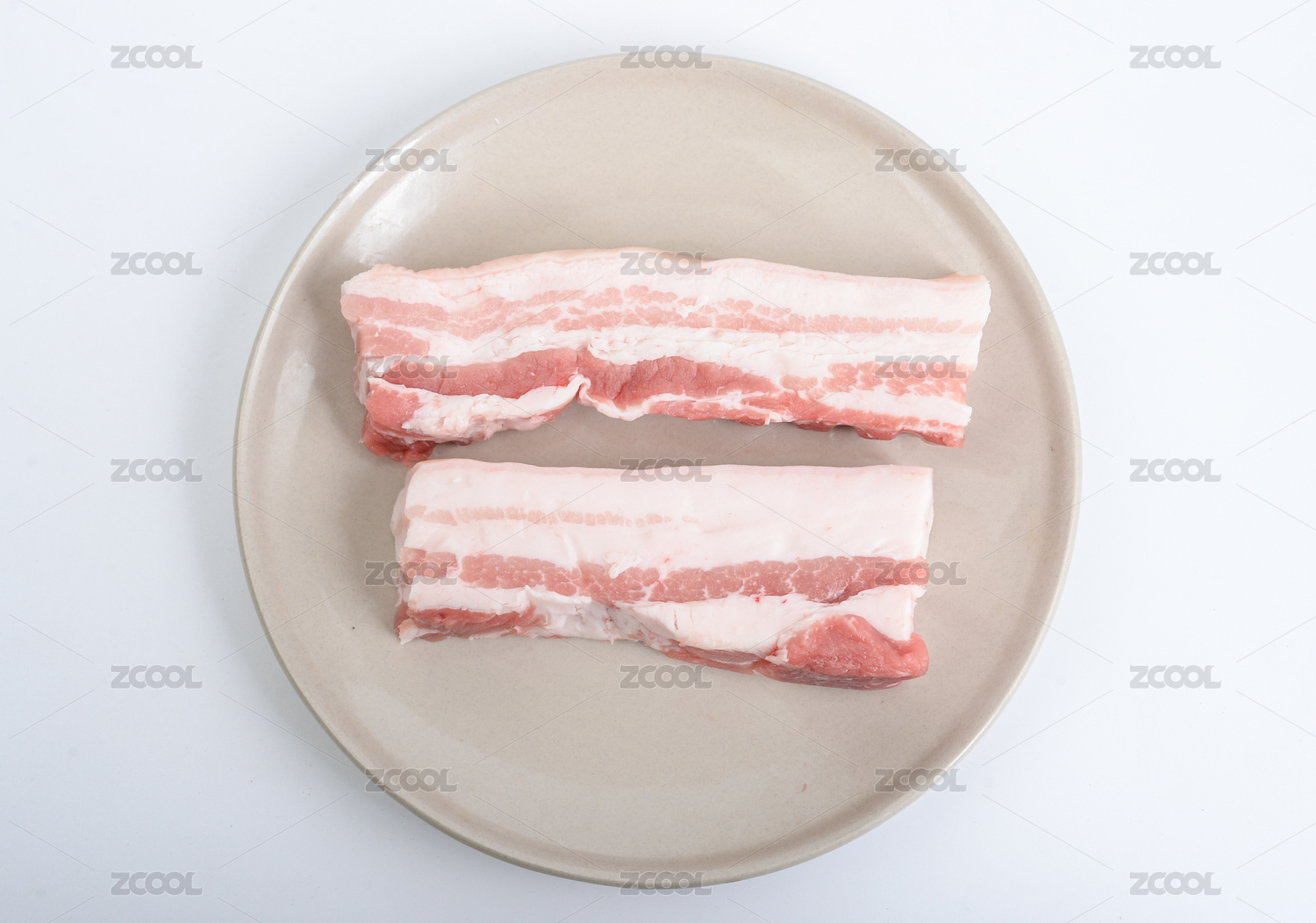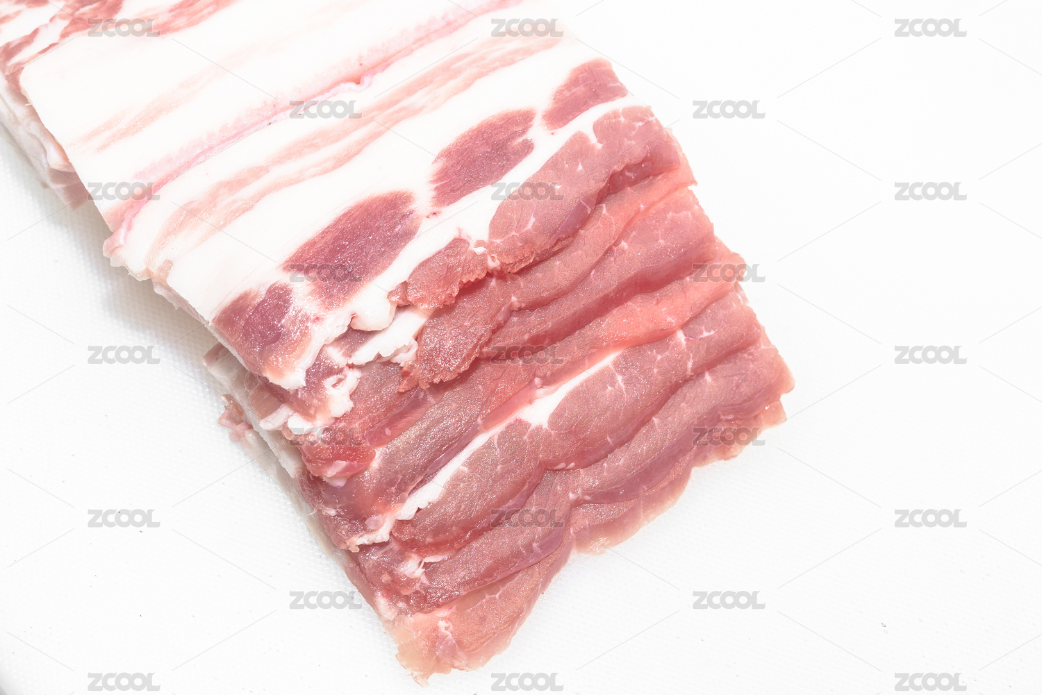 切片的五花肉放在白色背景上