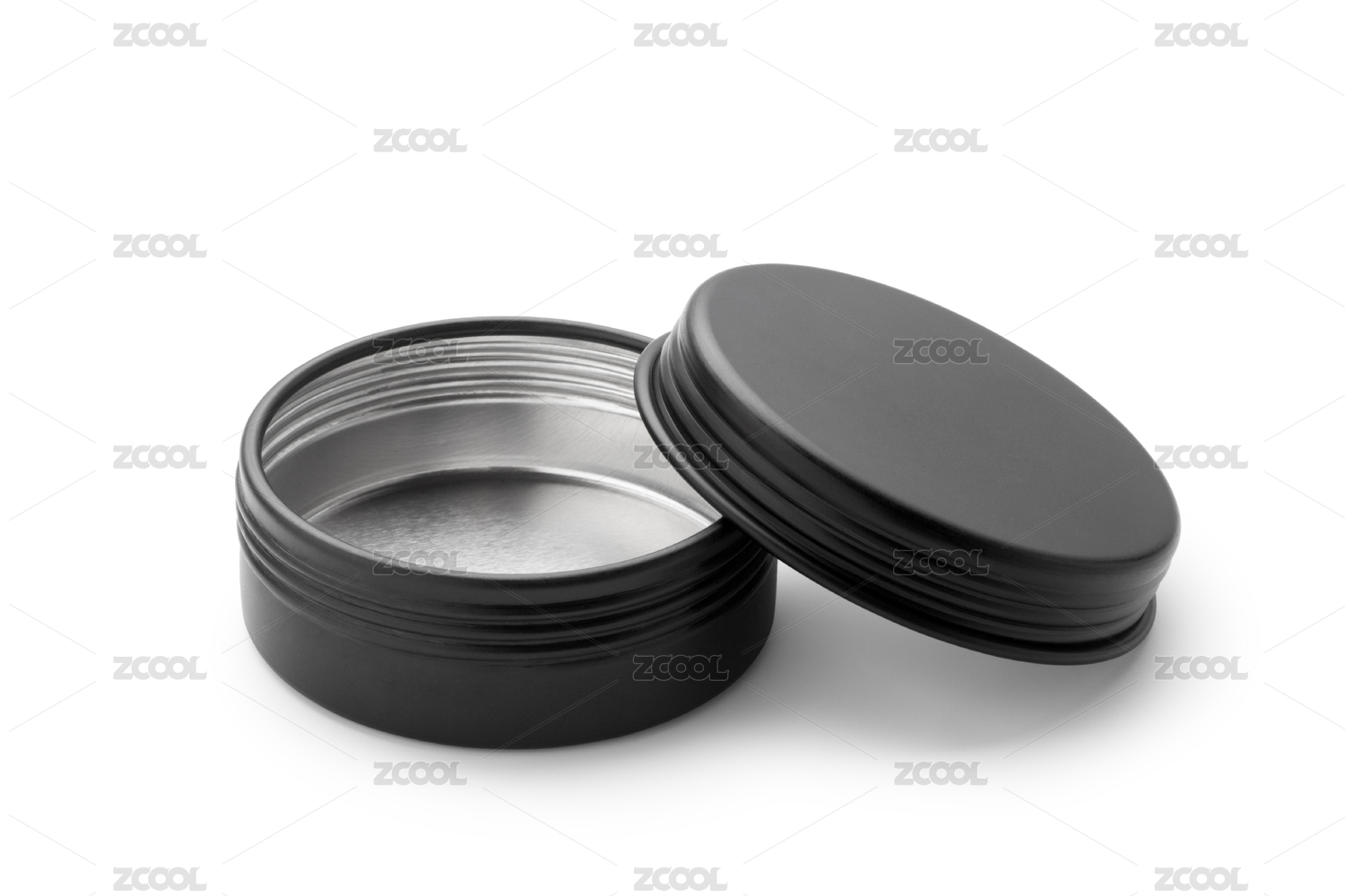 黑色的铁盒或铝罐,可用于分装化妆品或药膏