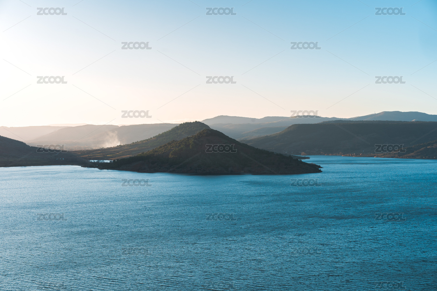 湖泊与山丘黄昏自然风景