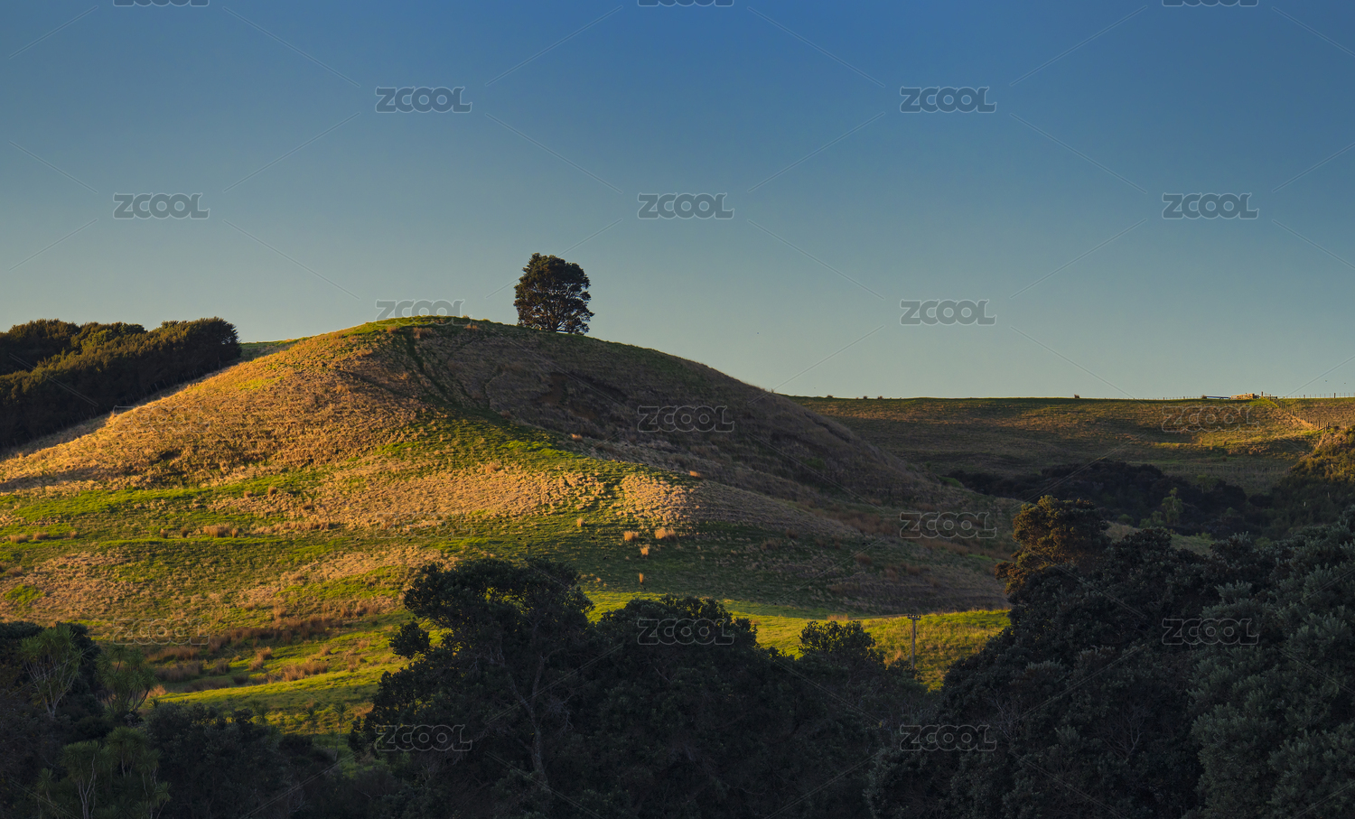 蓝天下的山丘风光