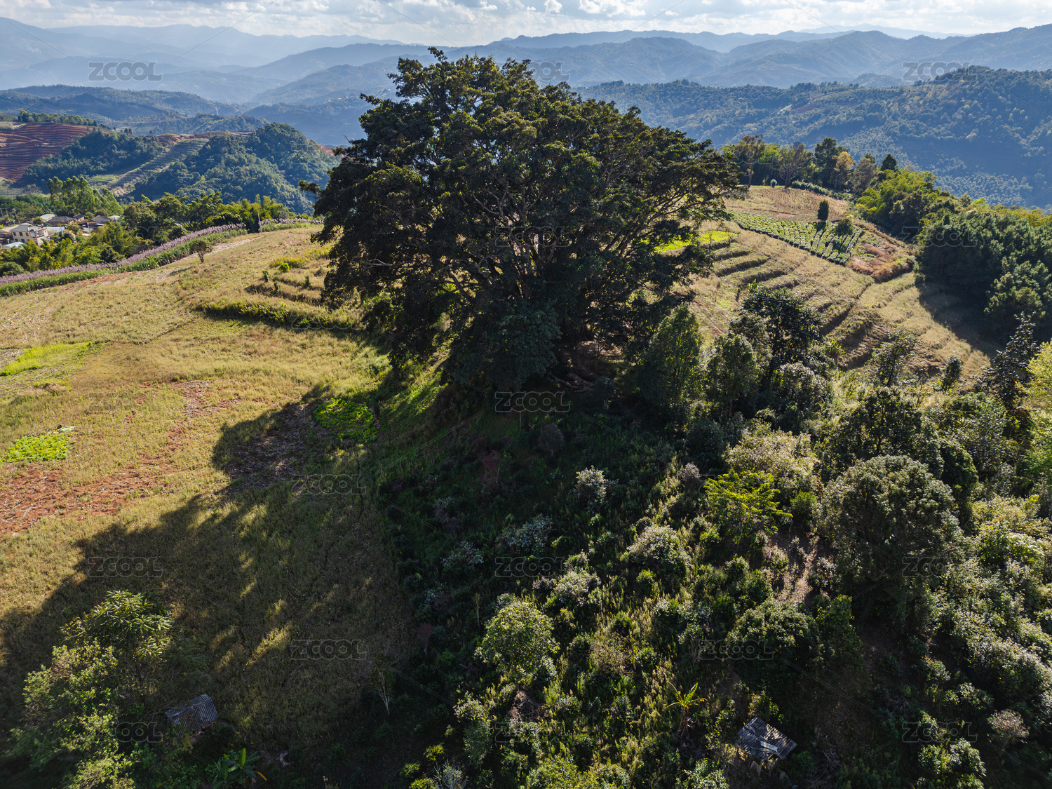 航拍山丘大树自然风光
