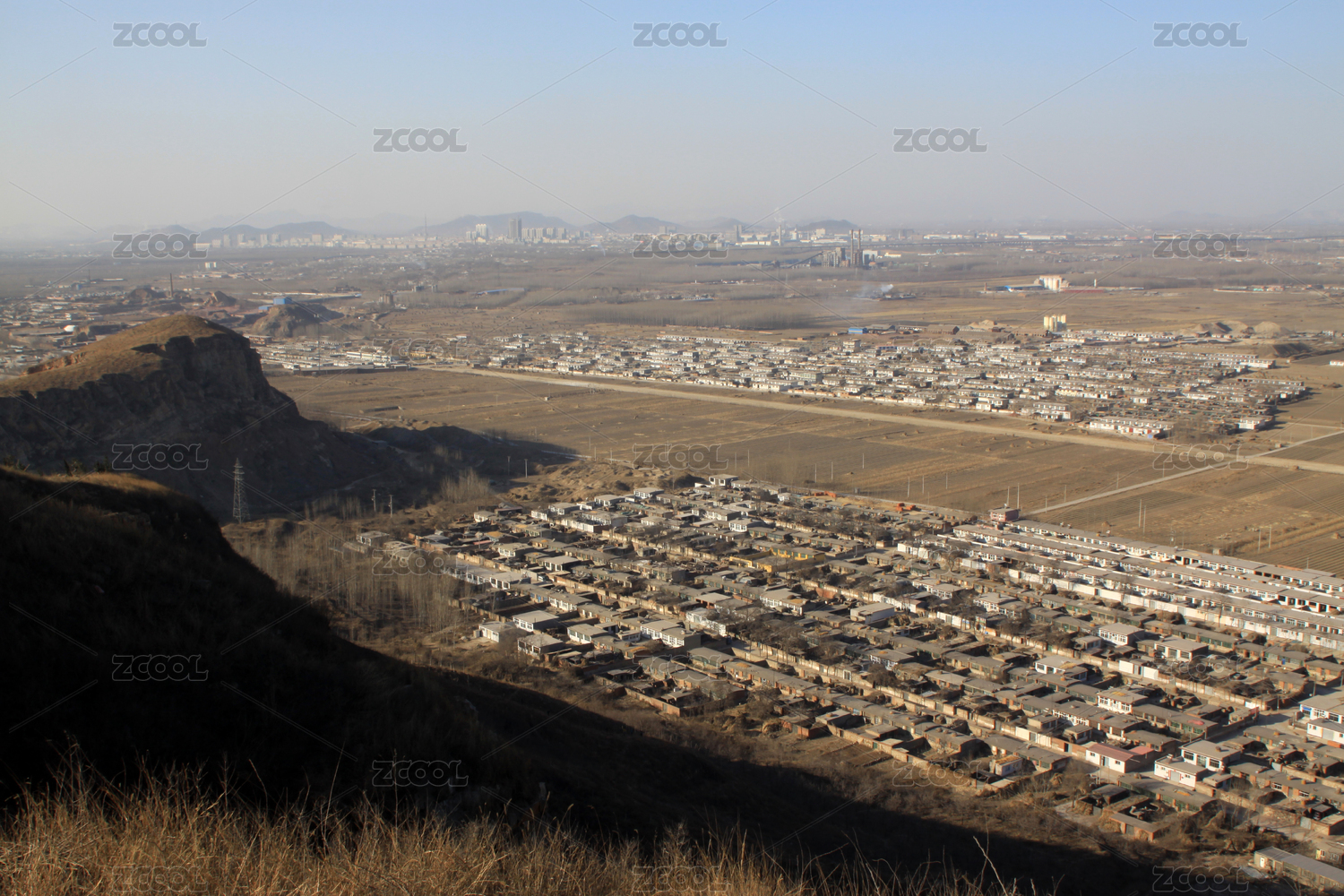 山丘俯瞰城市住宅区
