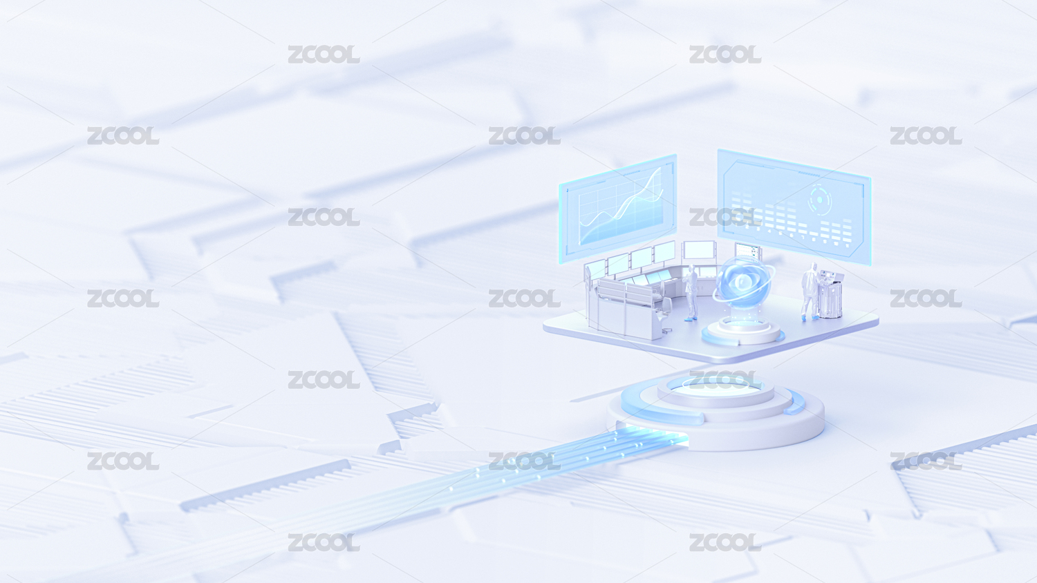 科技蓝白监控中控平台控制中心智能背景3D