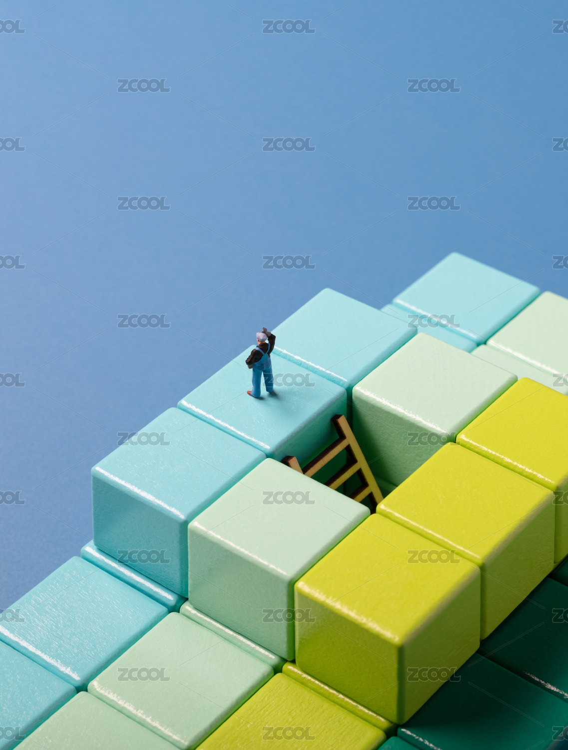 微缩创意从梯子逃离深坑迷宫的人