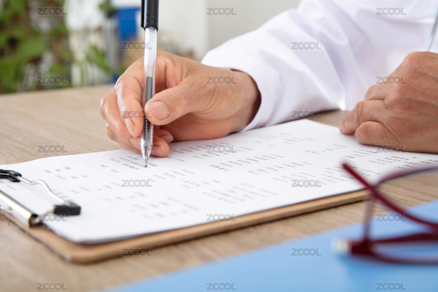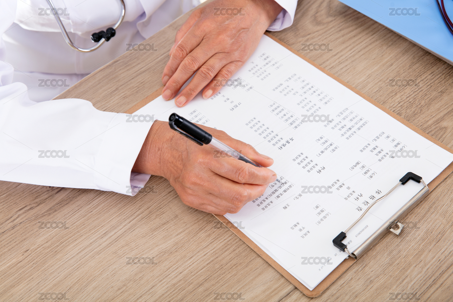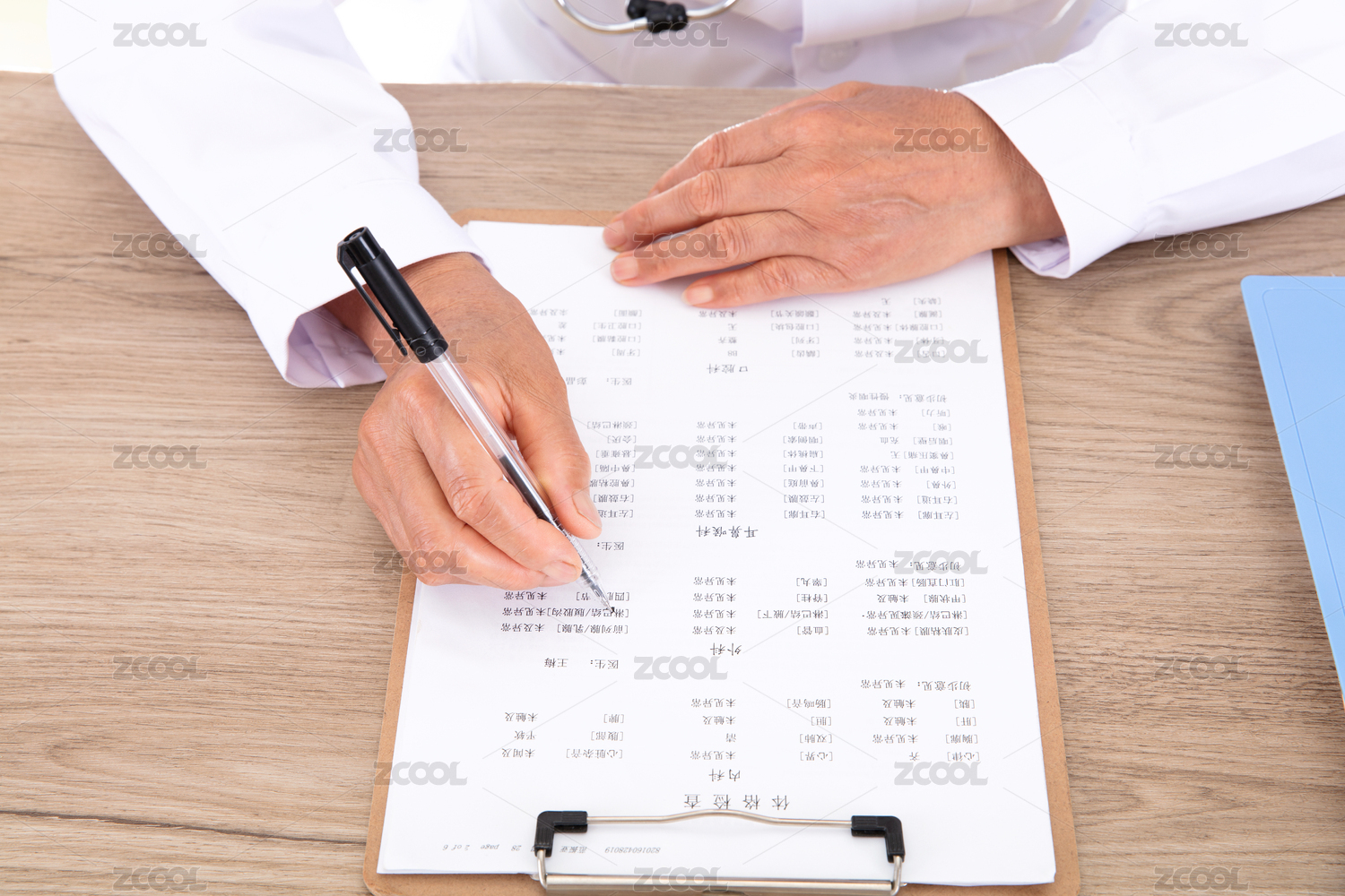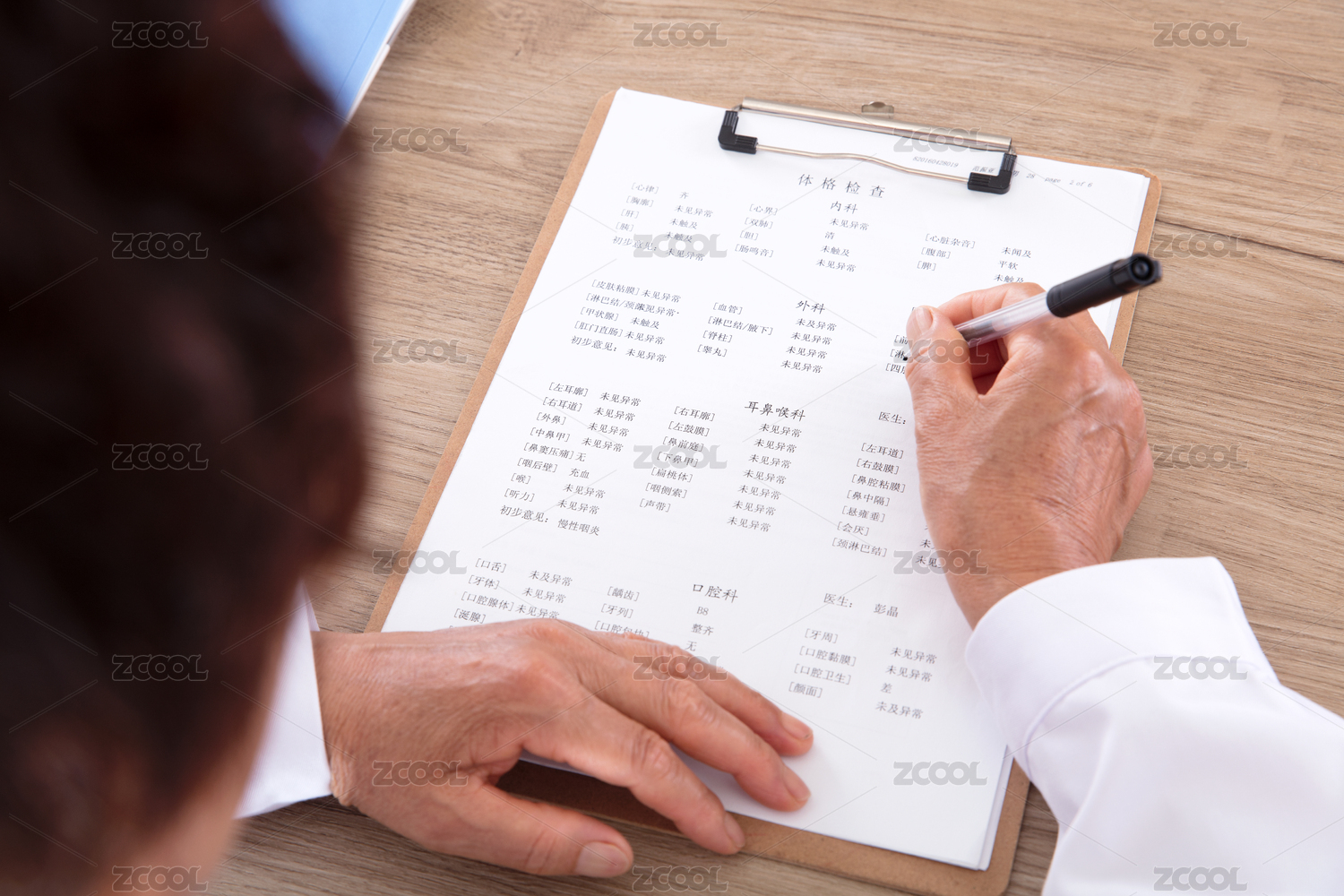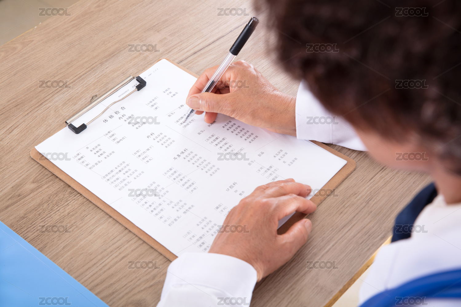 医院的大夫正在查看患者的化验单