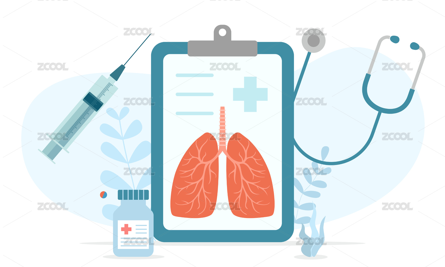 肺部检查或化验单,肺部治疗插画