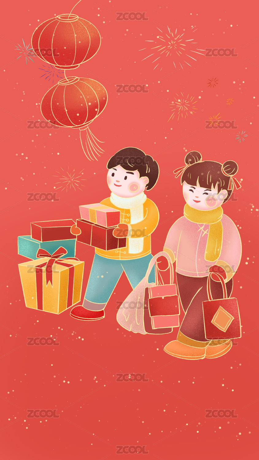 国潮风春节习俗买年货