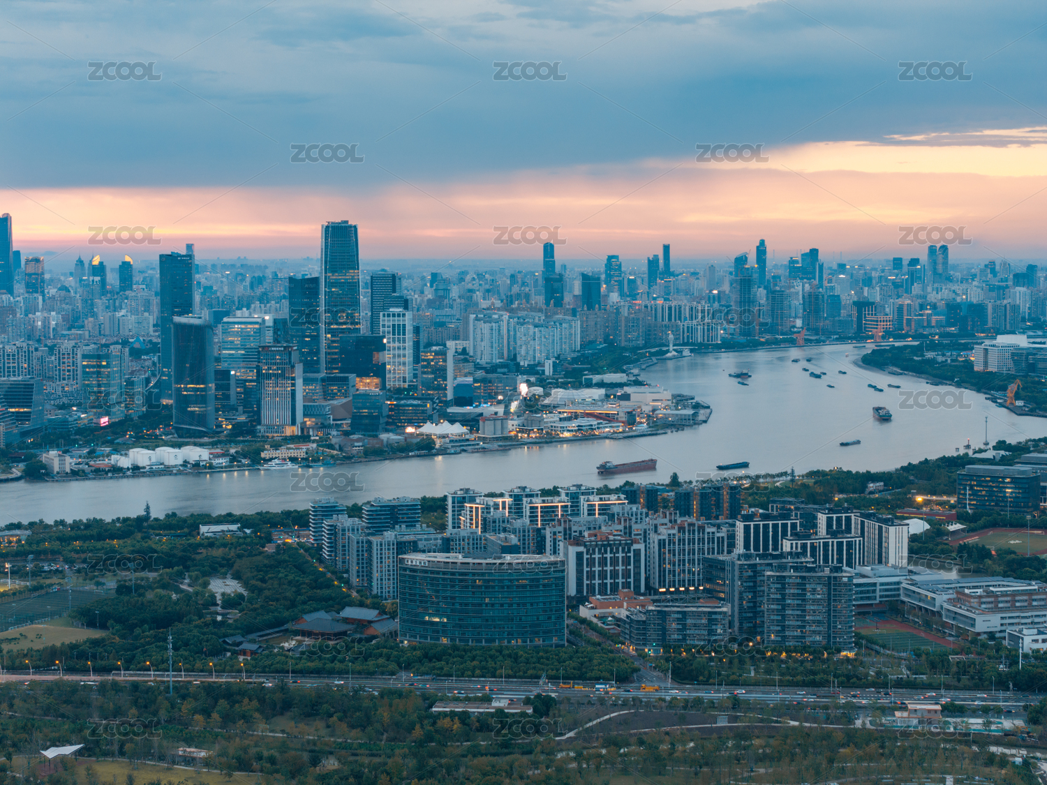 黄昏下的上海徐汇滨江