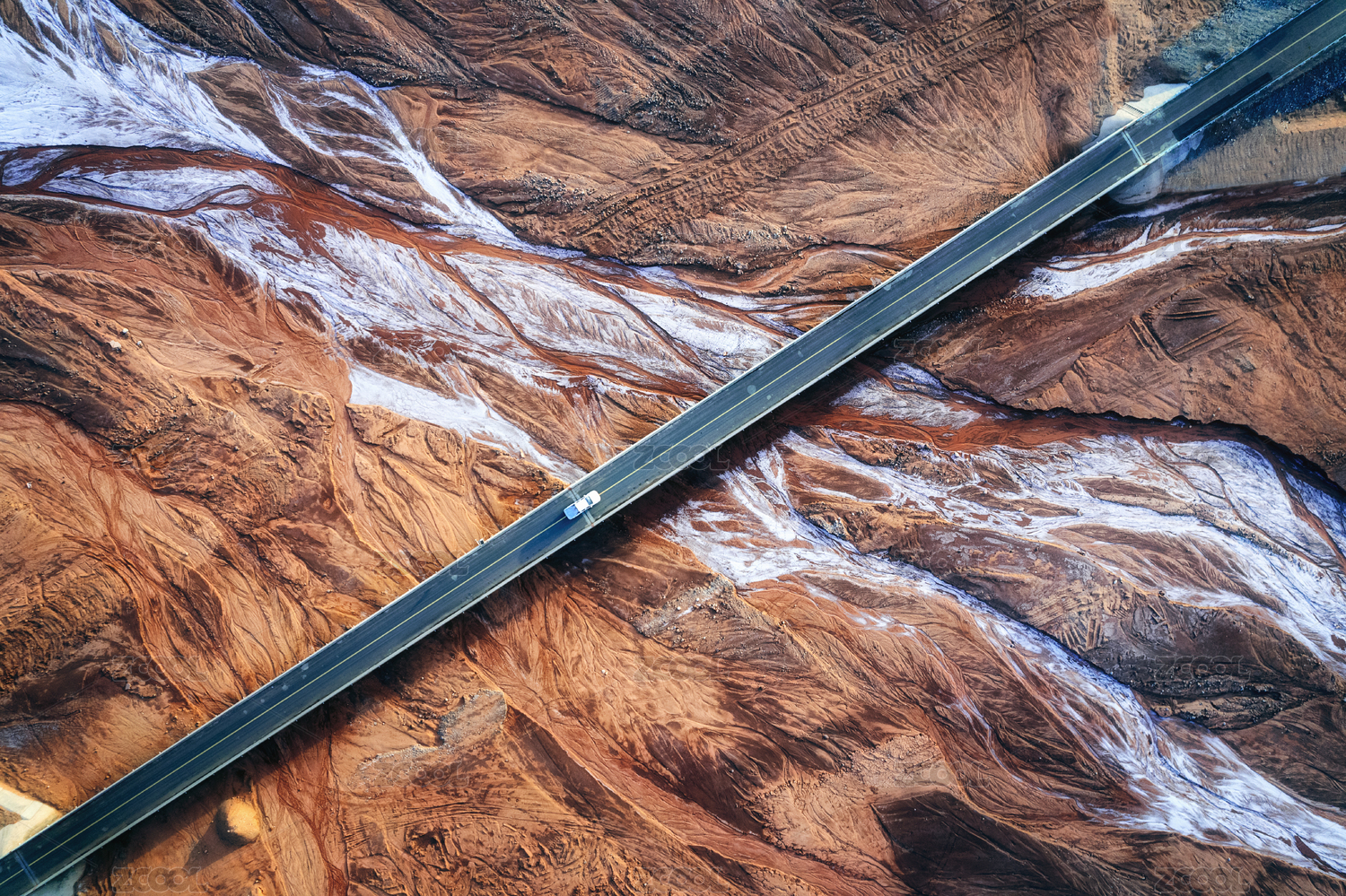 中国青海戈壁滩上一条笔直的公路