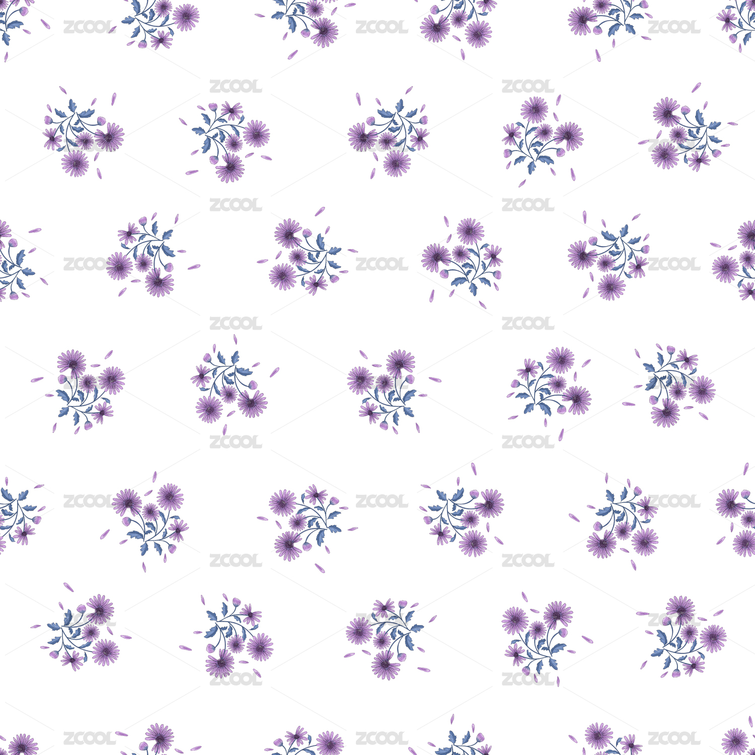 白色背景的无缝连续野菊花图案