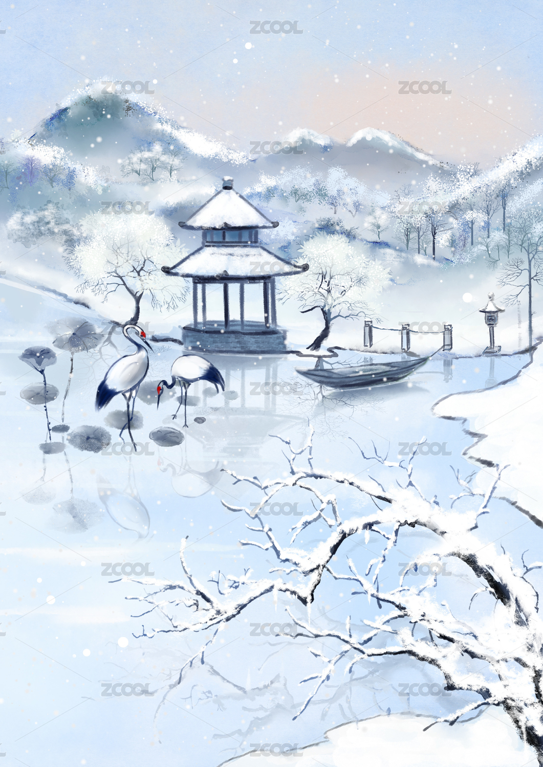 中国冬季童话 | 大雪中国风手绘海报