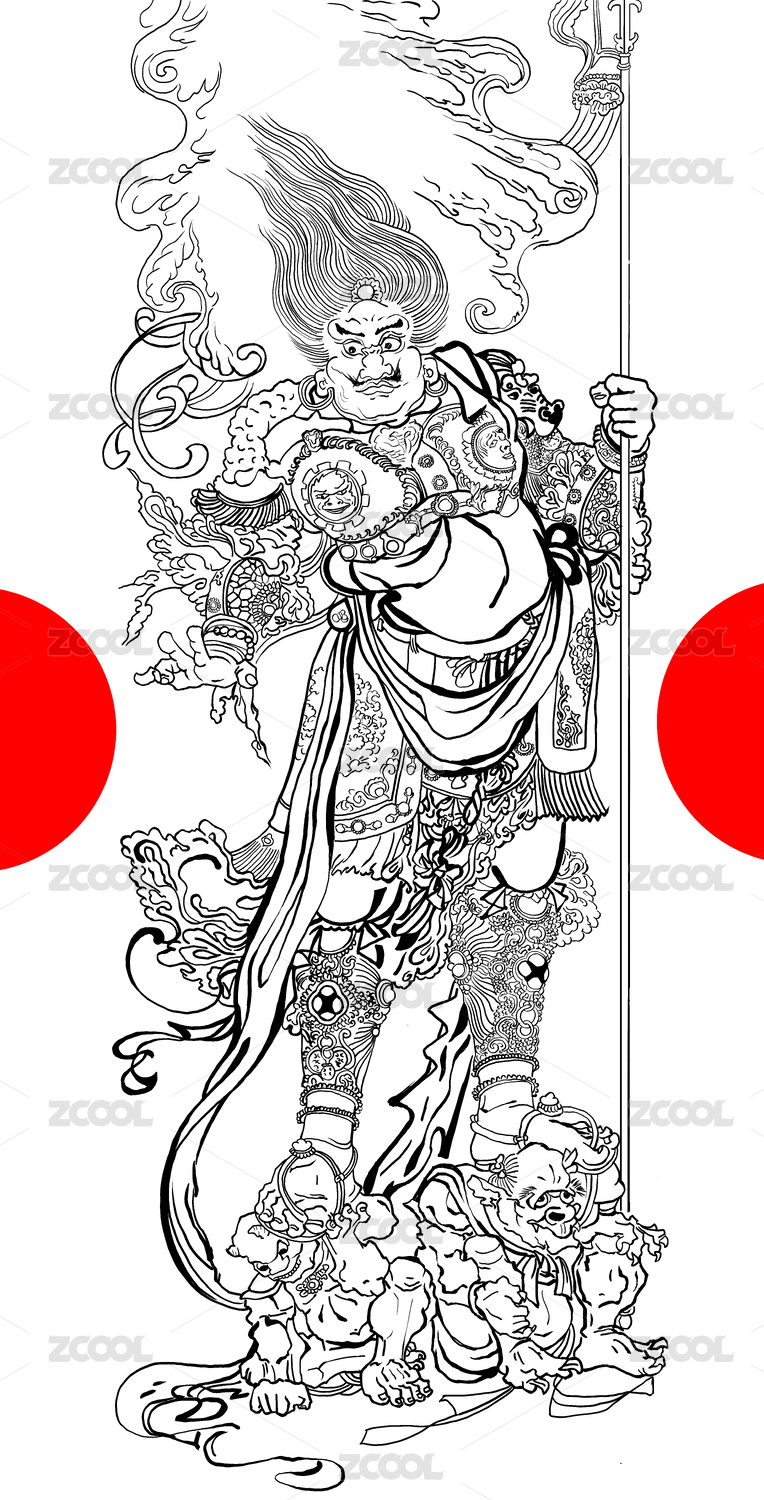 中国风手绘线条门神