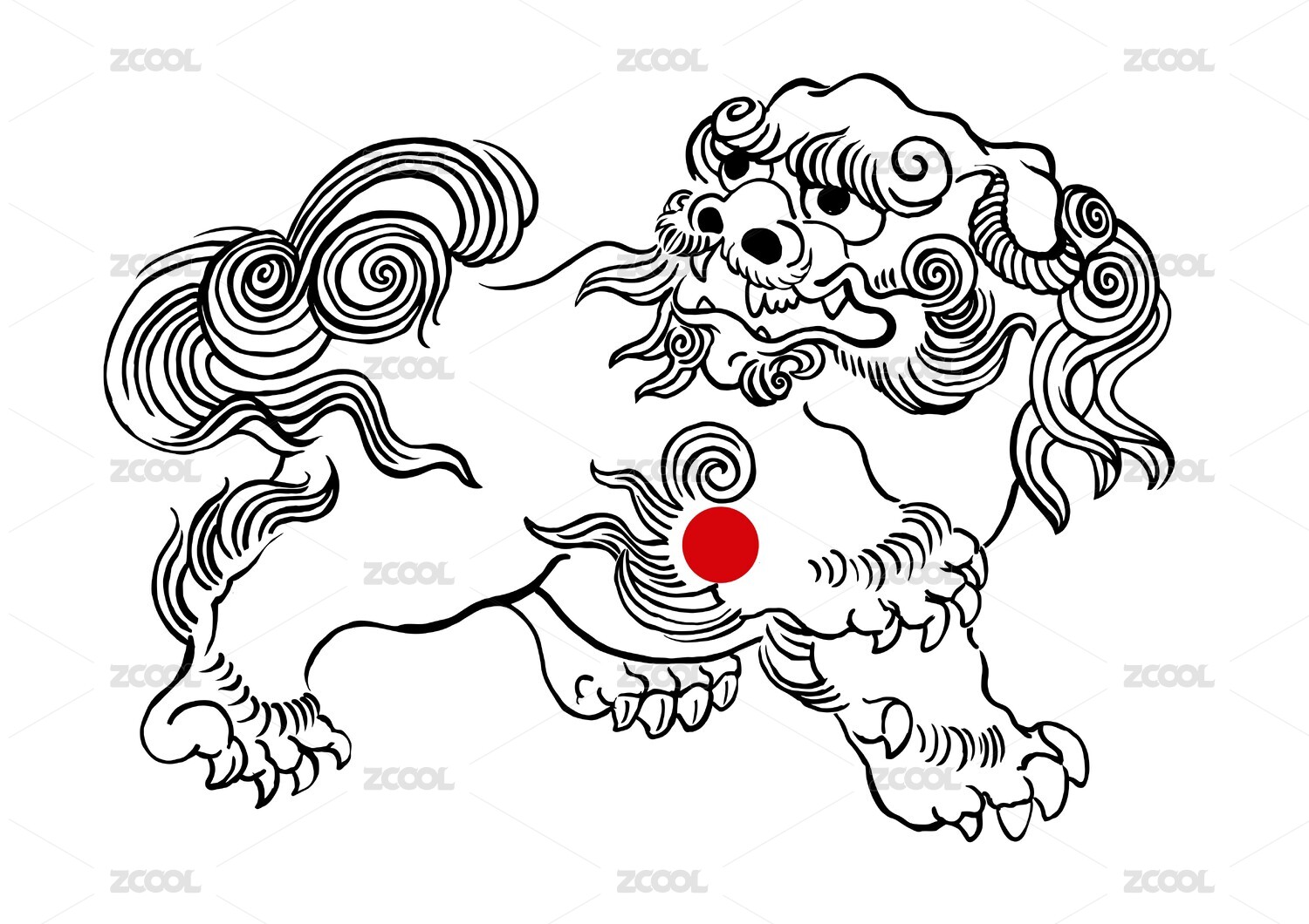 中国风手绘线条石狮