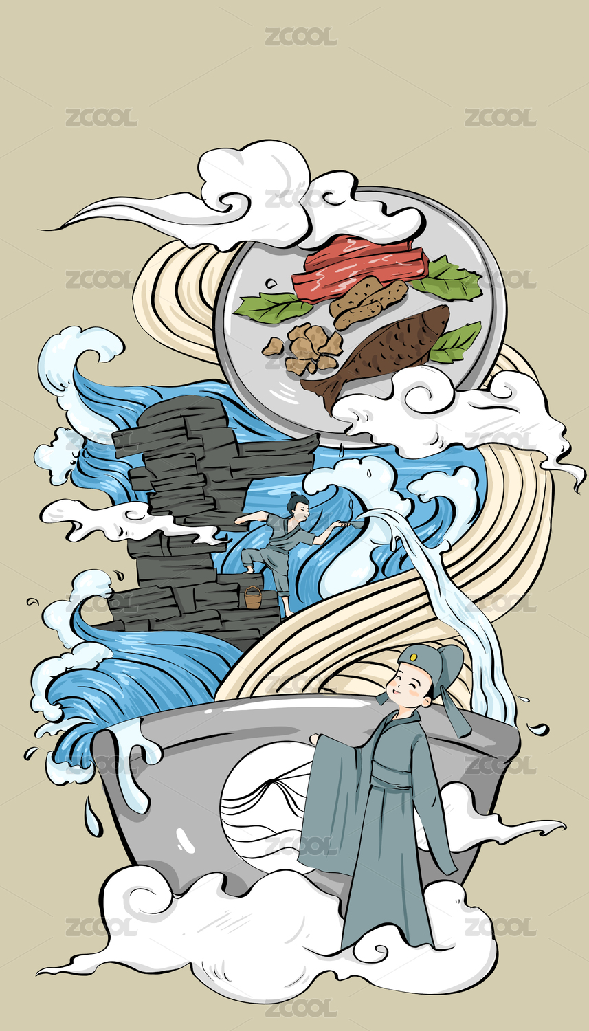 手工面中国风手绘小清新美食国潮插画