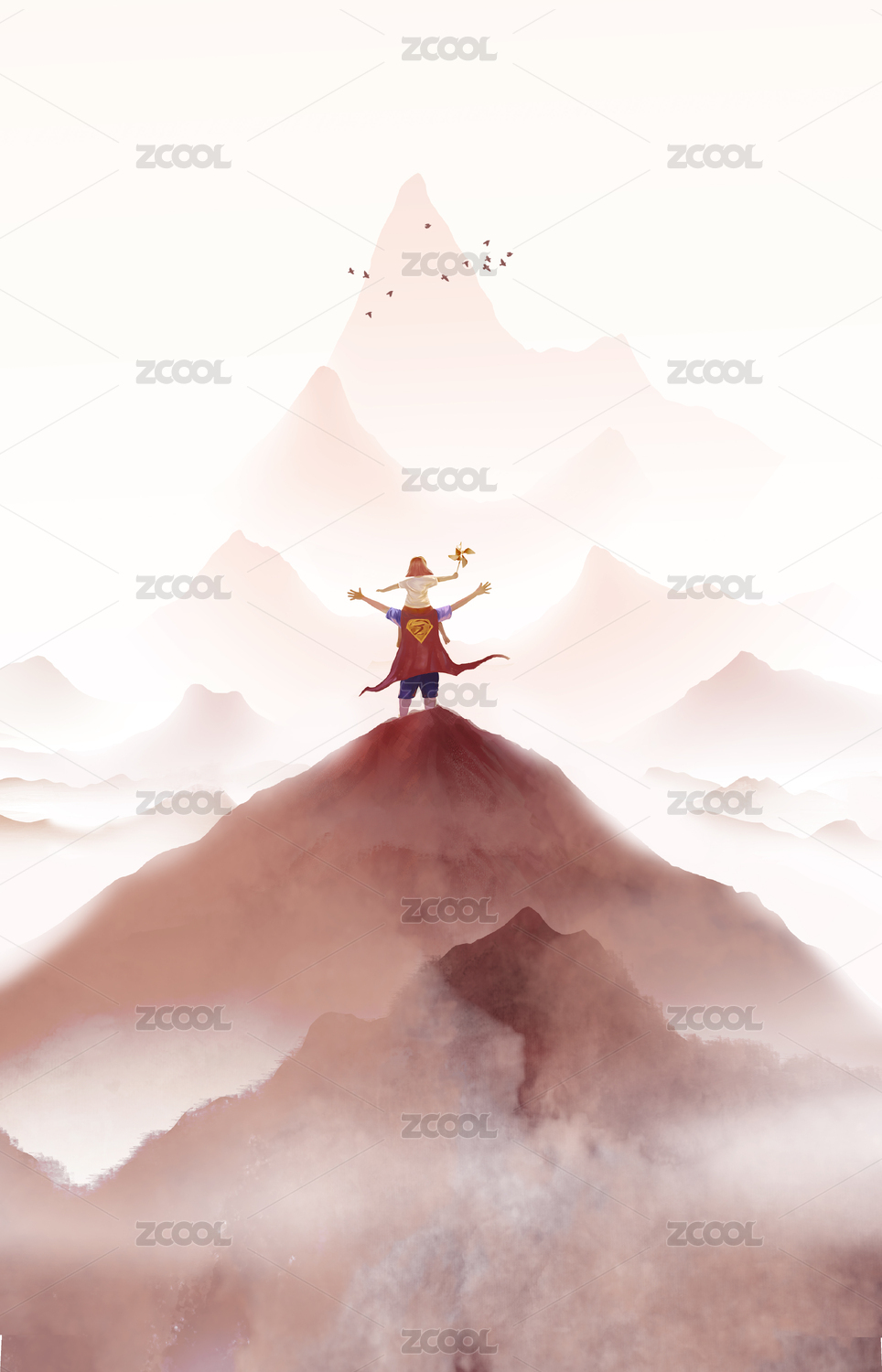 父亲节中国风手绘插画