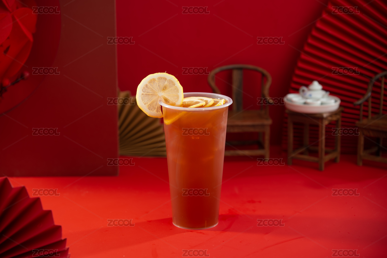 玻璃杯里盛着冰镇可口的柠檬水果饮料,炭木色餐桌上放着半只红柚