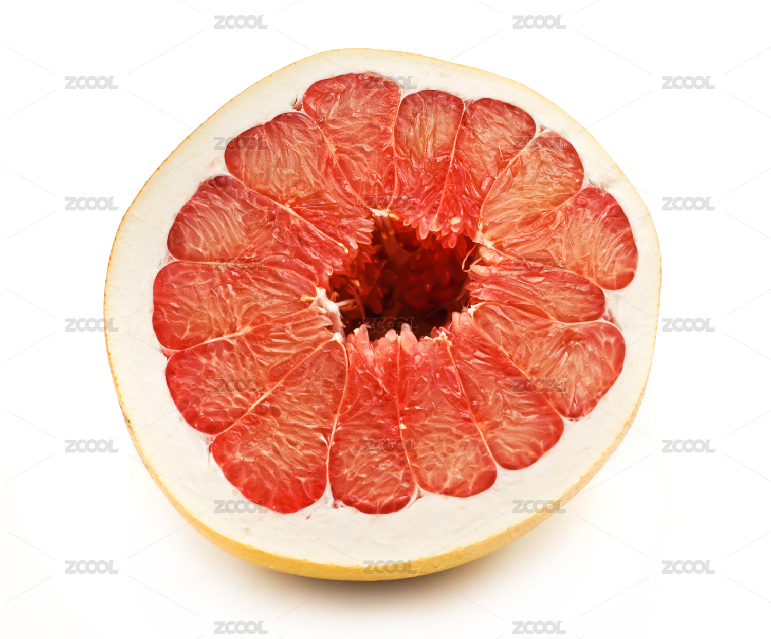 白底上有半边去皮的红柚和一碟红心柚果肉
