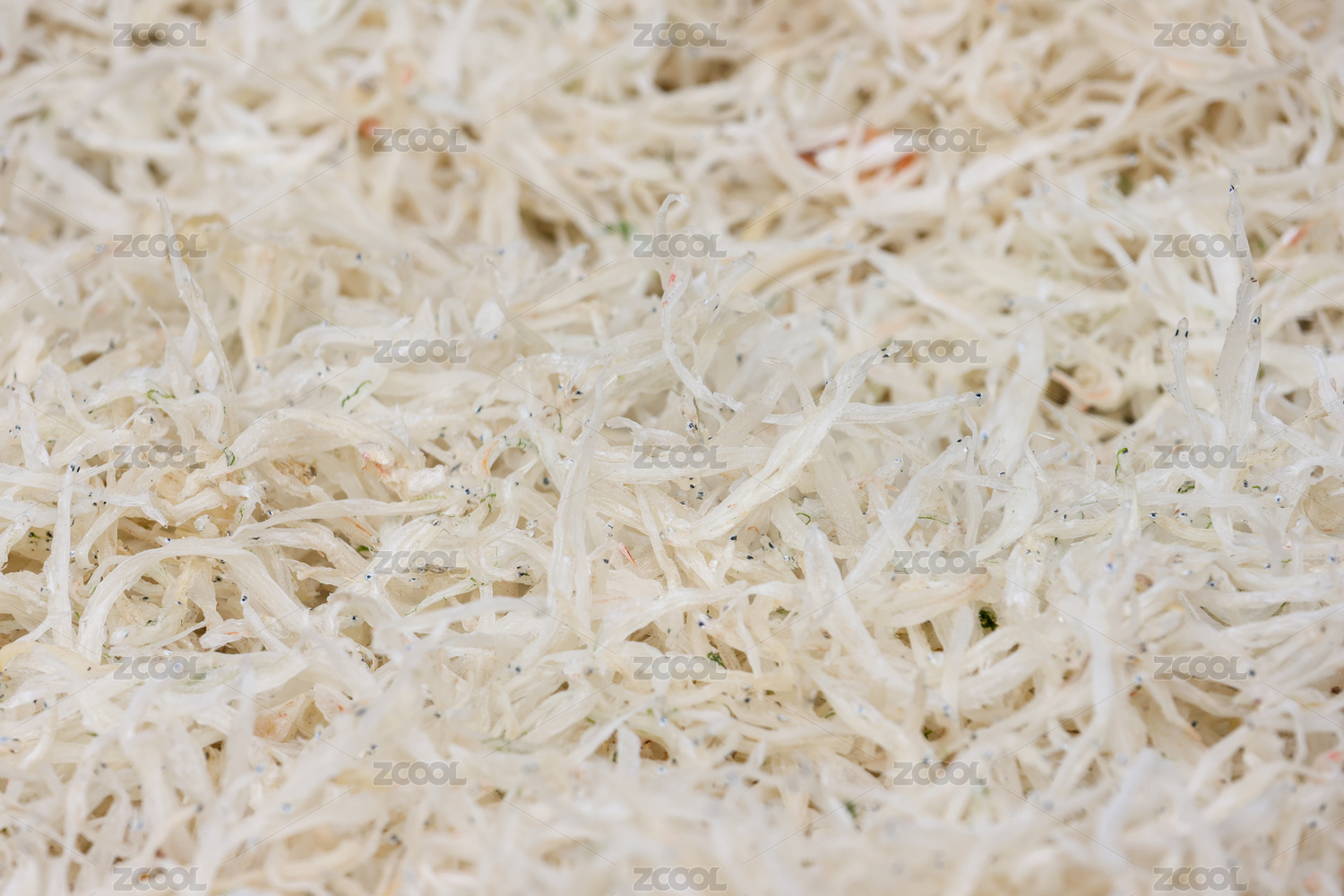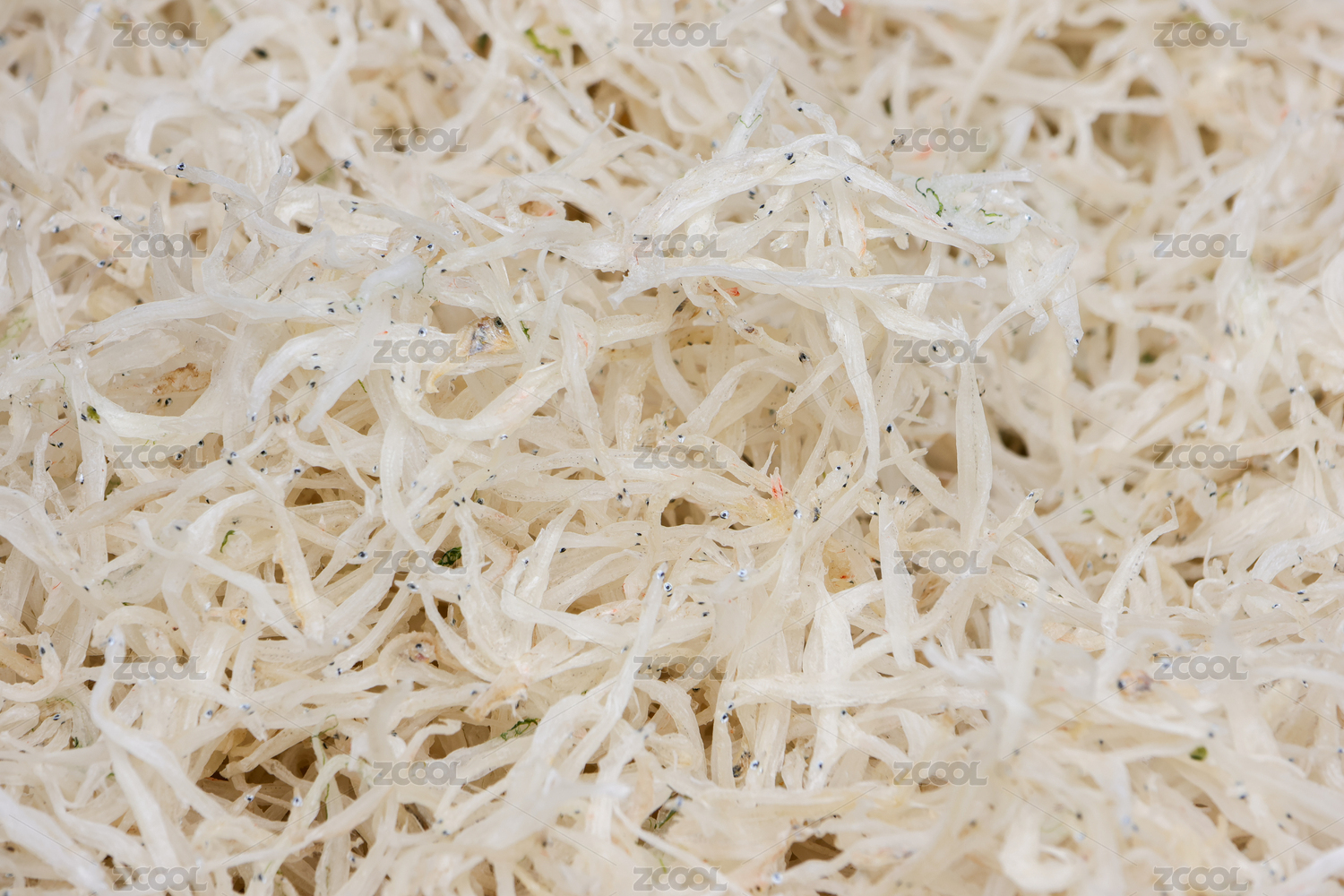 市场中一堆海产品银鱼干特写
