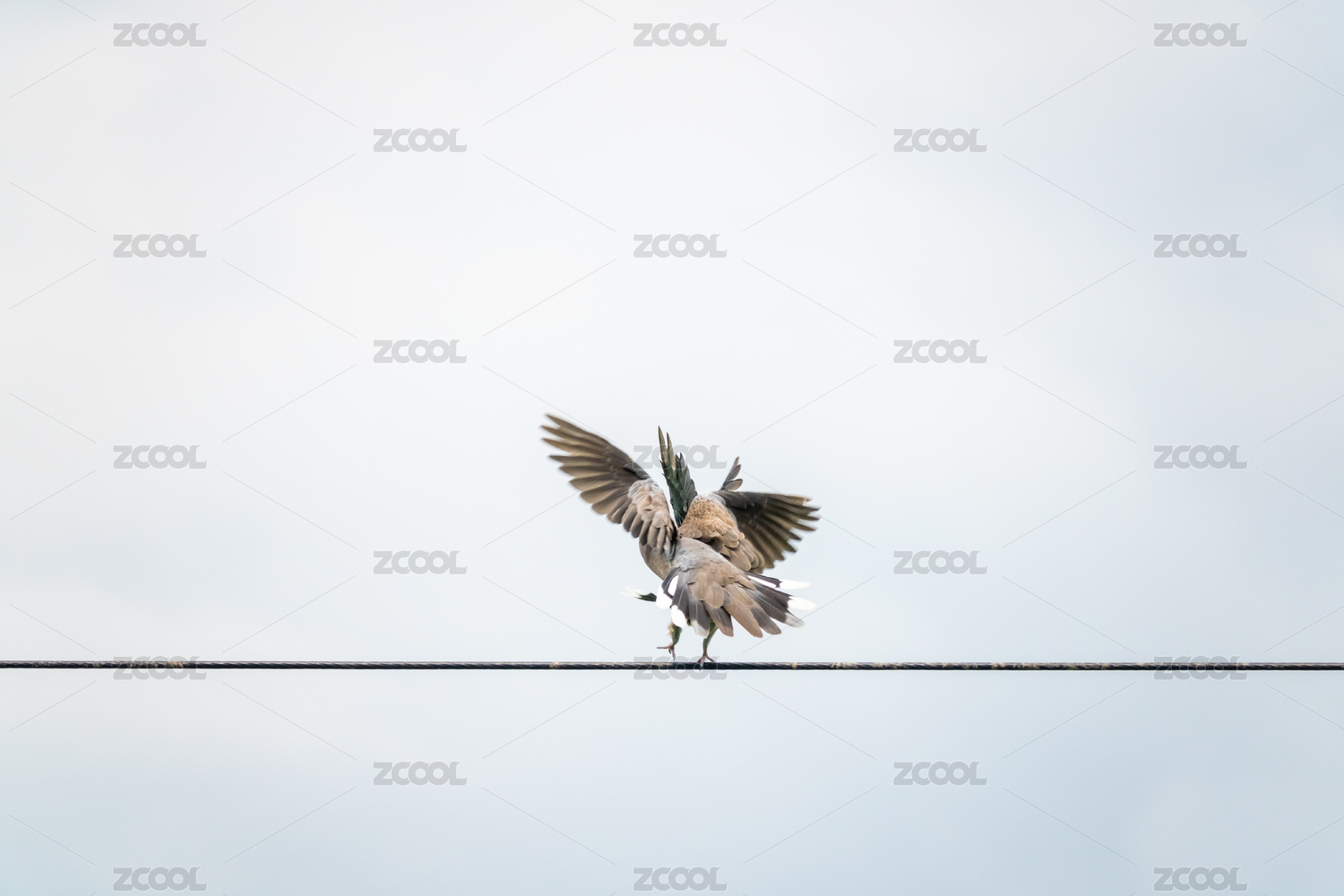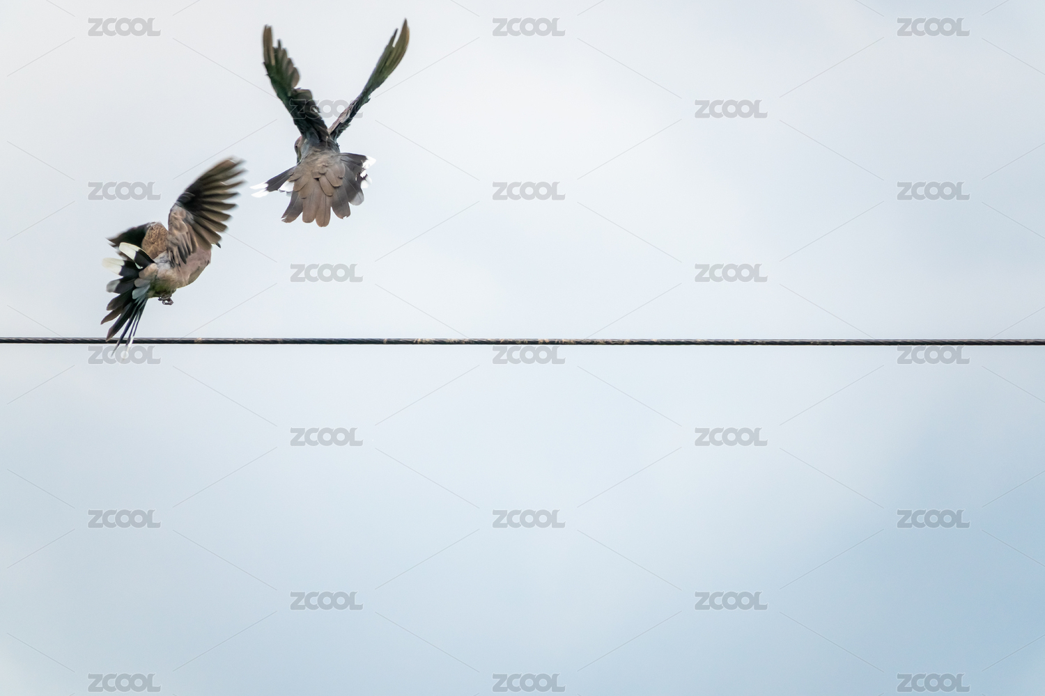 两只小鸟在电线上嬉戏