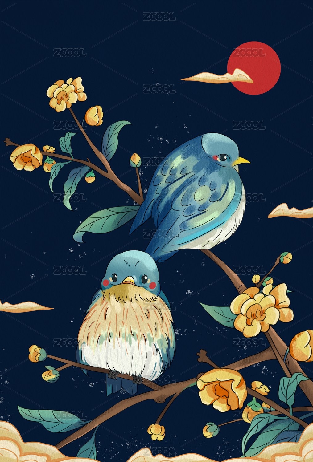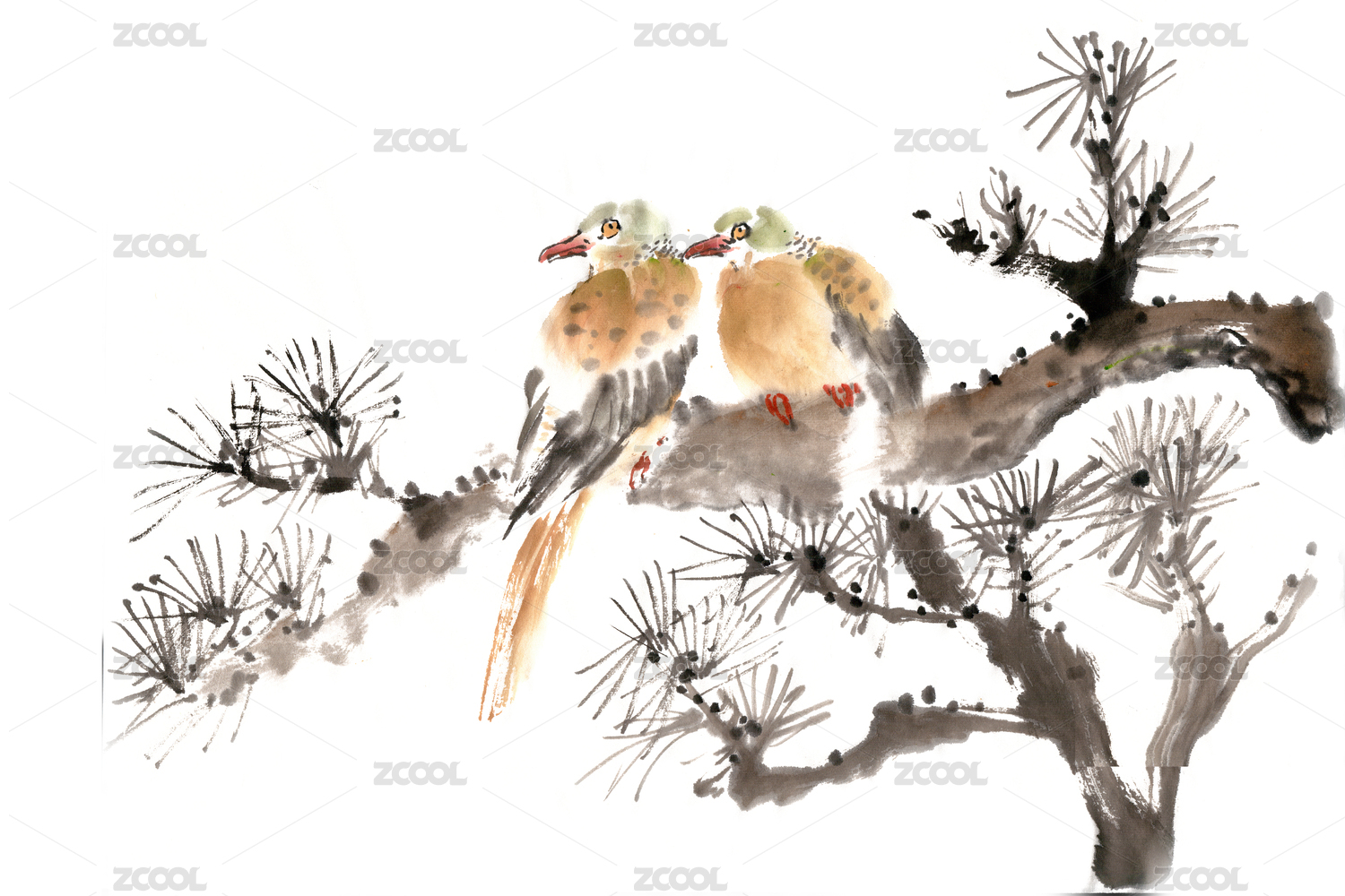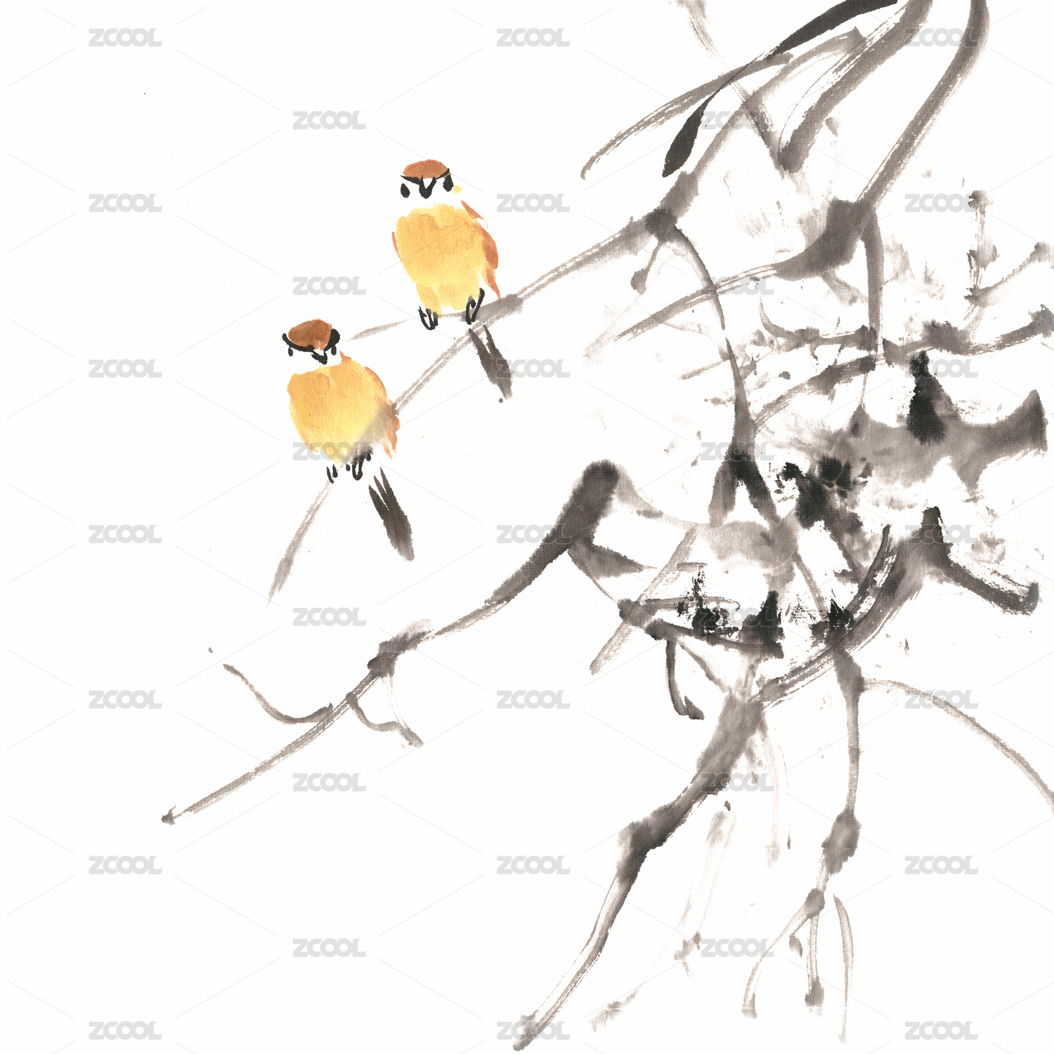 中国风国画两只小鸟