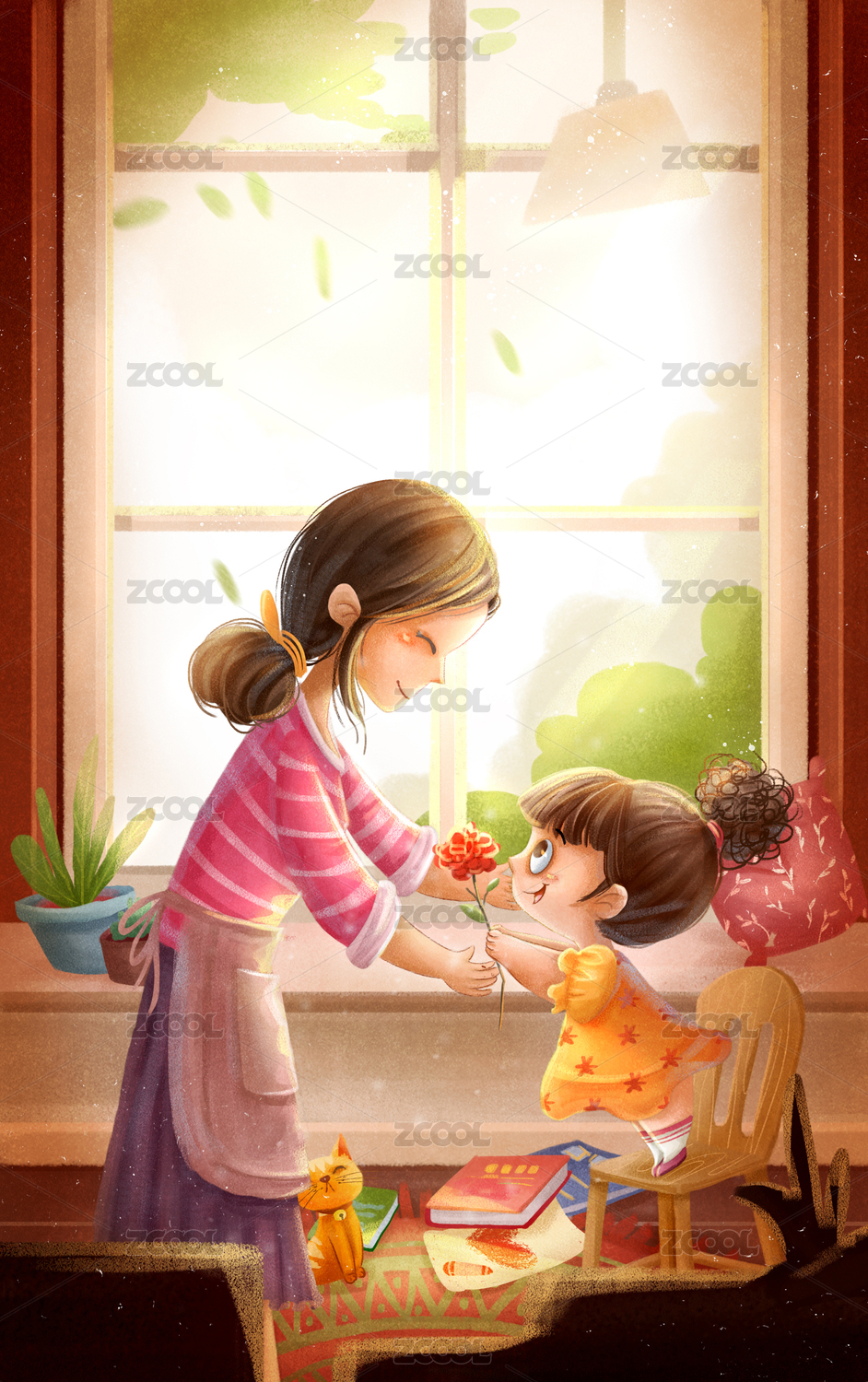 孩子送花给母亲