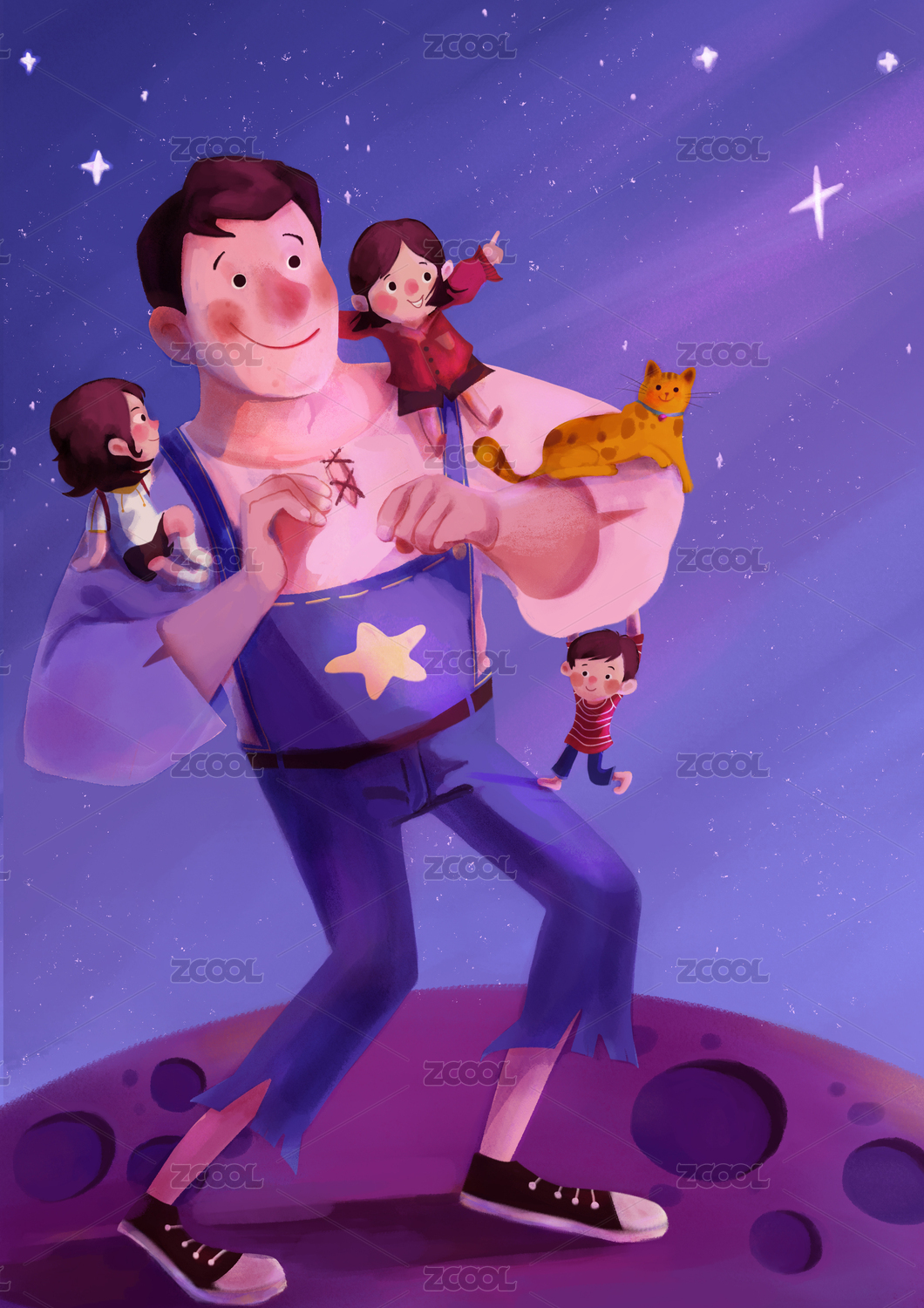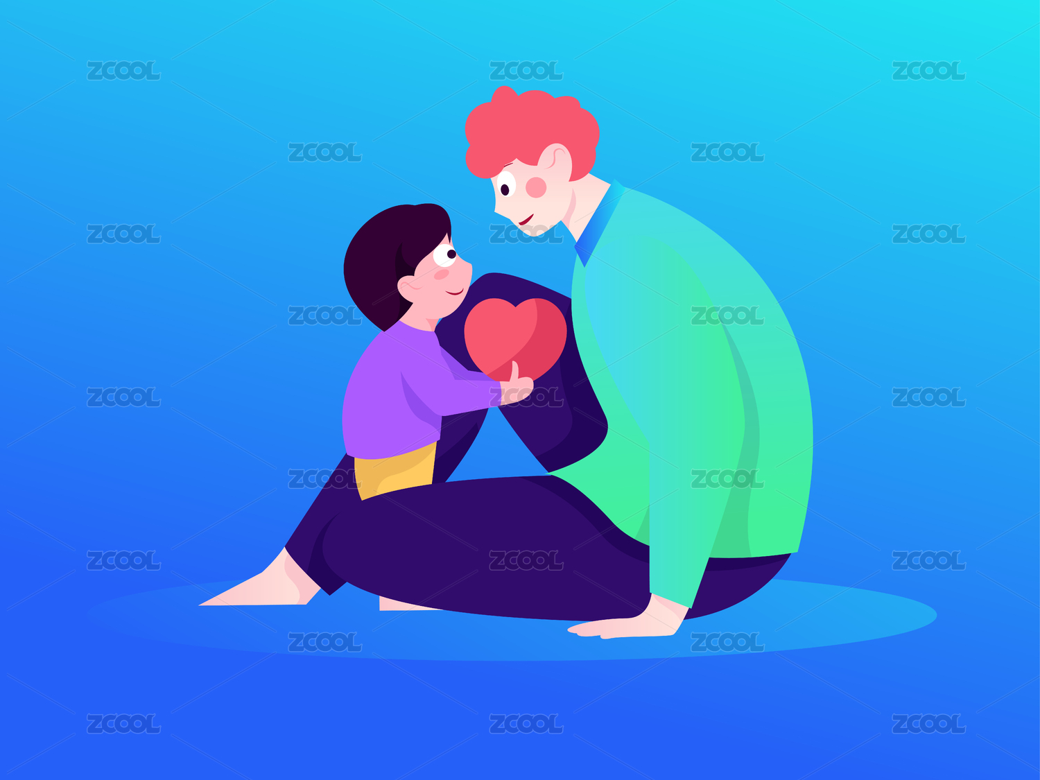 父爱如山, 矢量扁平人物场景创意概念插画