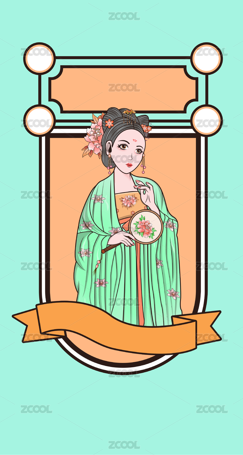 中国历代服装发饰发展图矢量图可爱卡通唐代