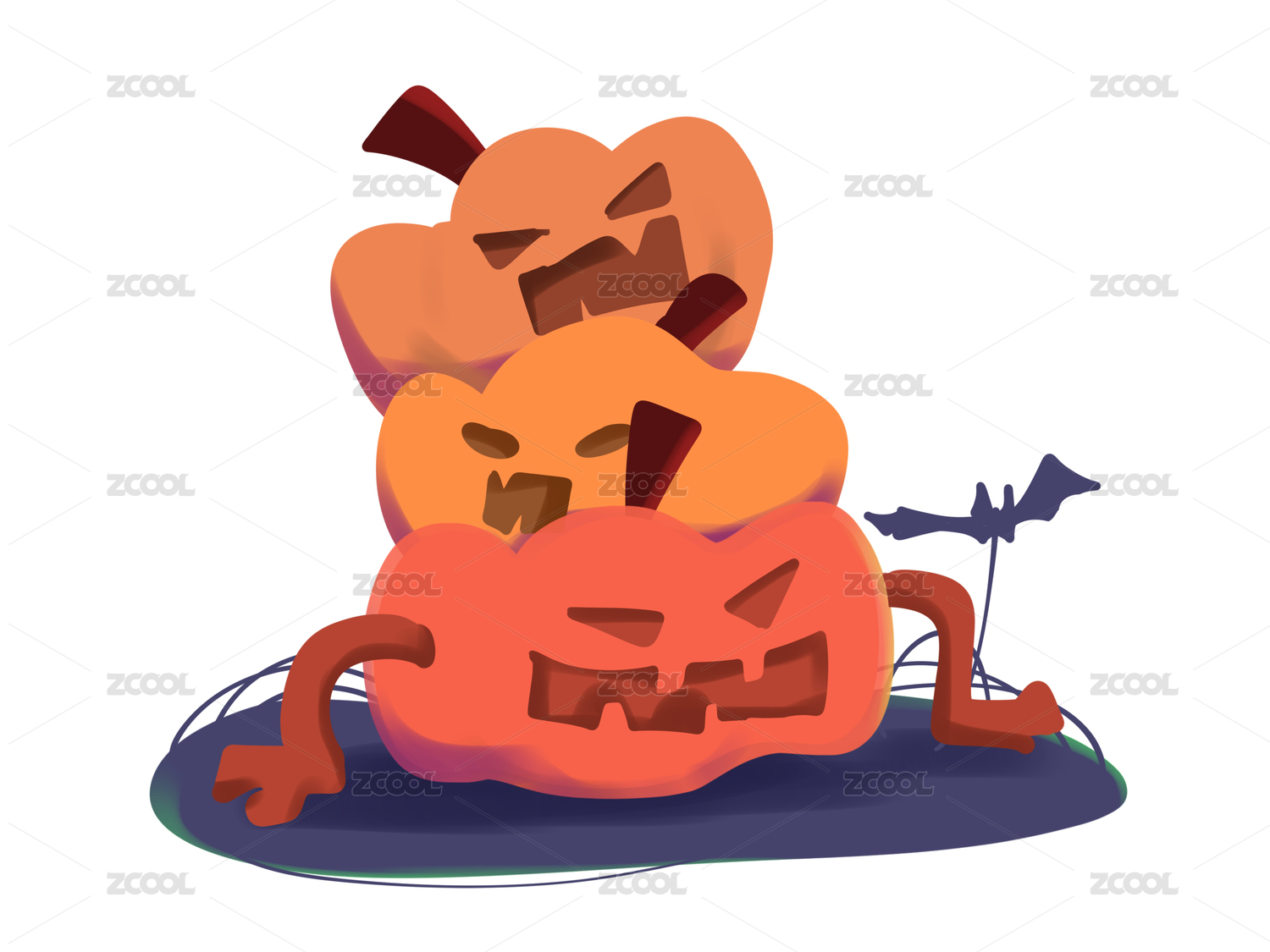 橘色卡通堆叠南瓜蝙蝠万圣节元素