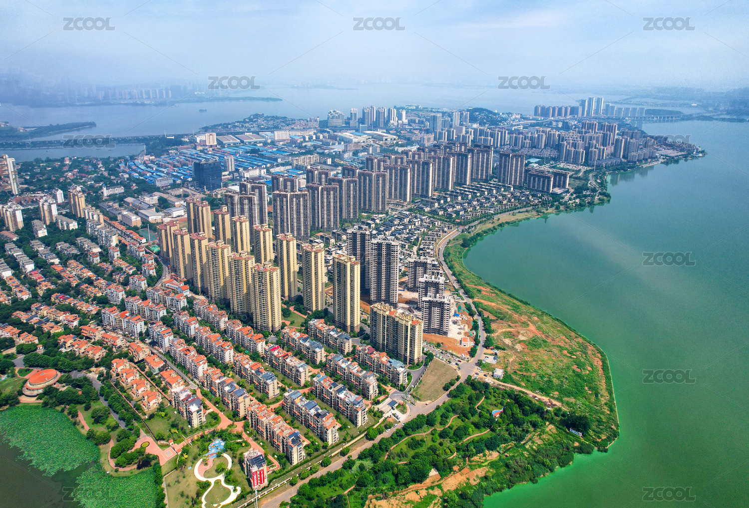 武汉江夏庙山碧桂园和加州橘郡楼宇航拍全景