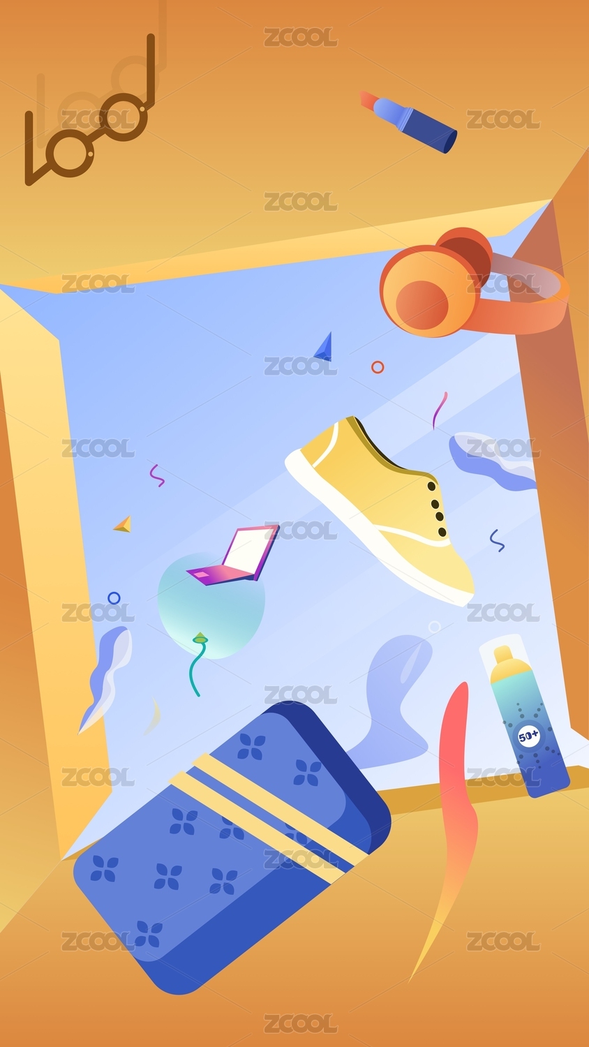 从纸箱子里飞出好多物品有包包、鞋子、耳机