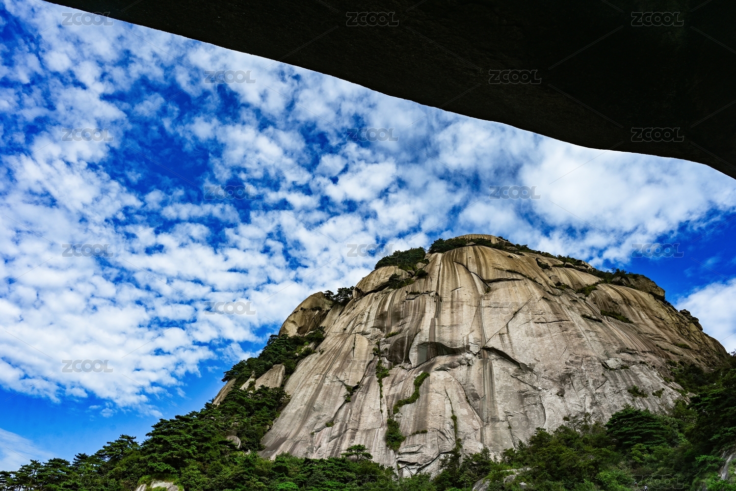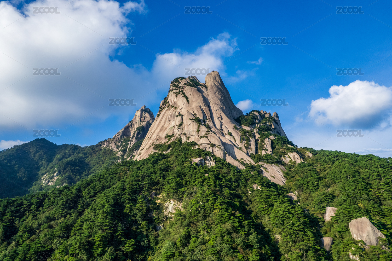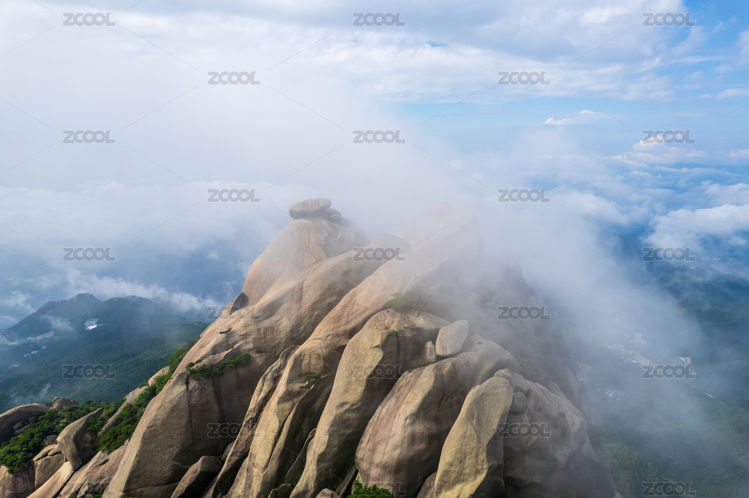 中国安徽天柱山的云雾中矗立的雄伟的山峰
