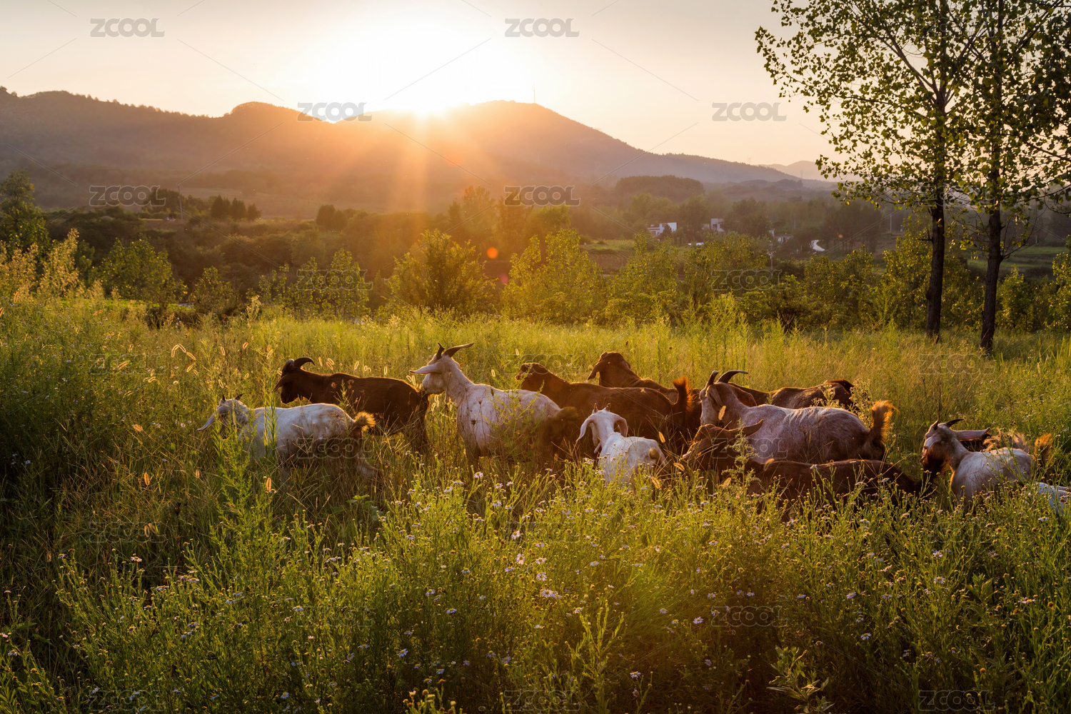 中国内乡县乡土气息的乡村牧羊(放羊)场景