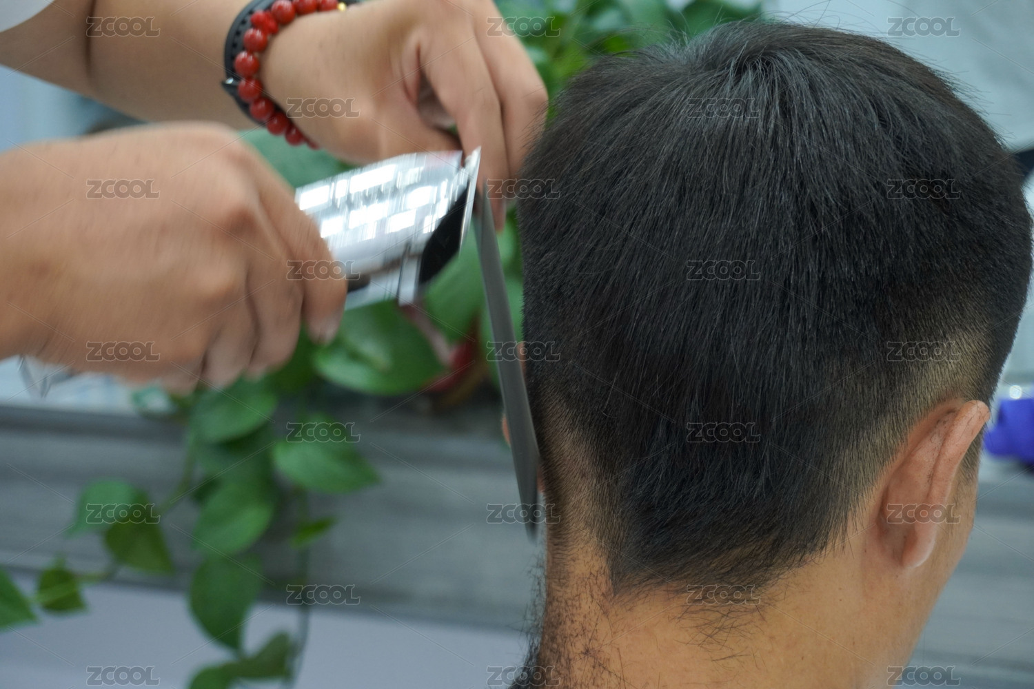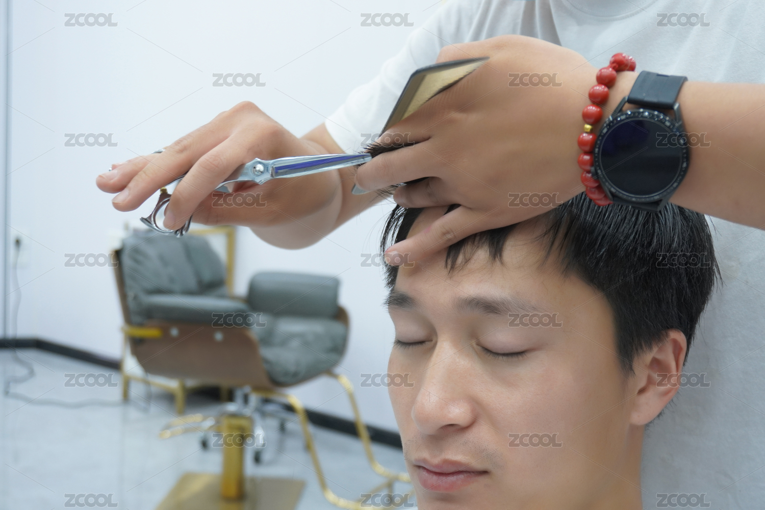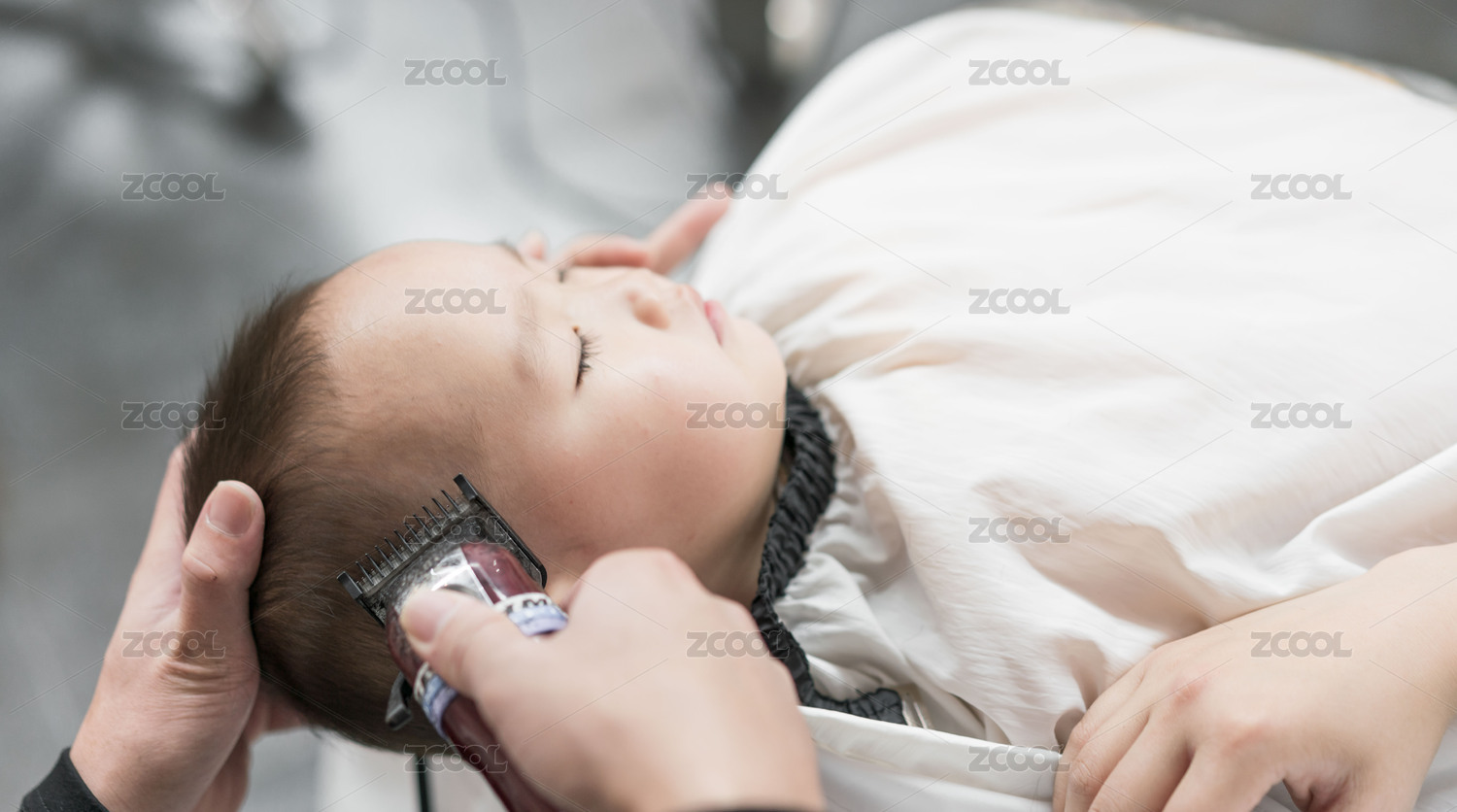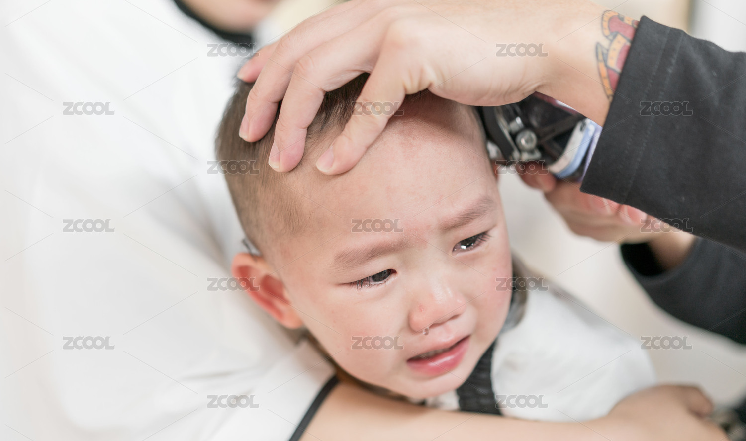 扁平风格矢量插画龙抬头理发师给小孩子剪头