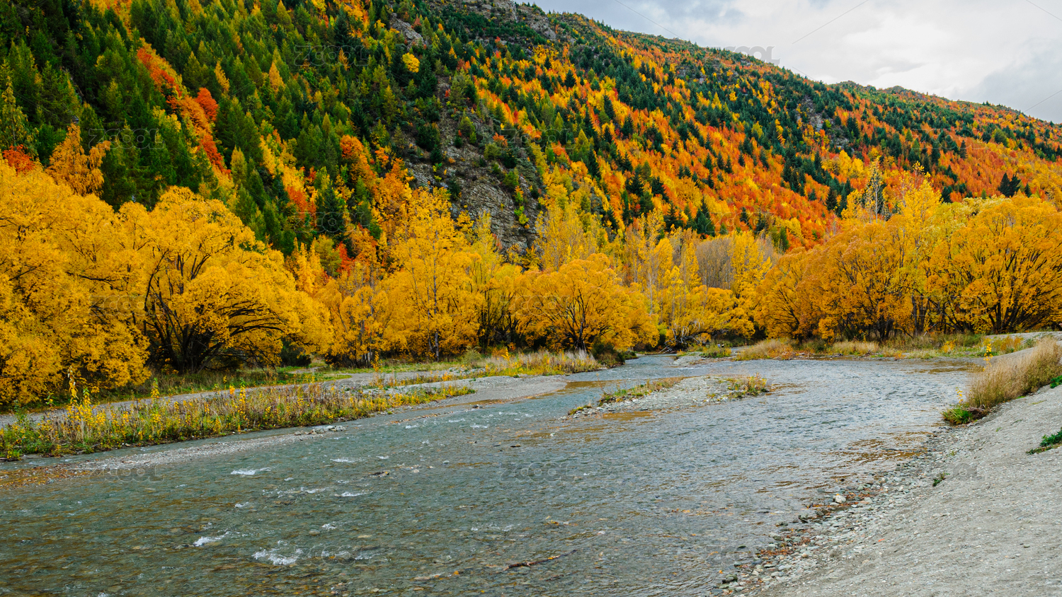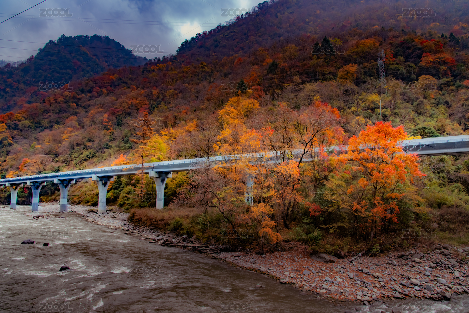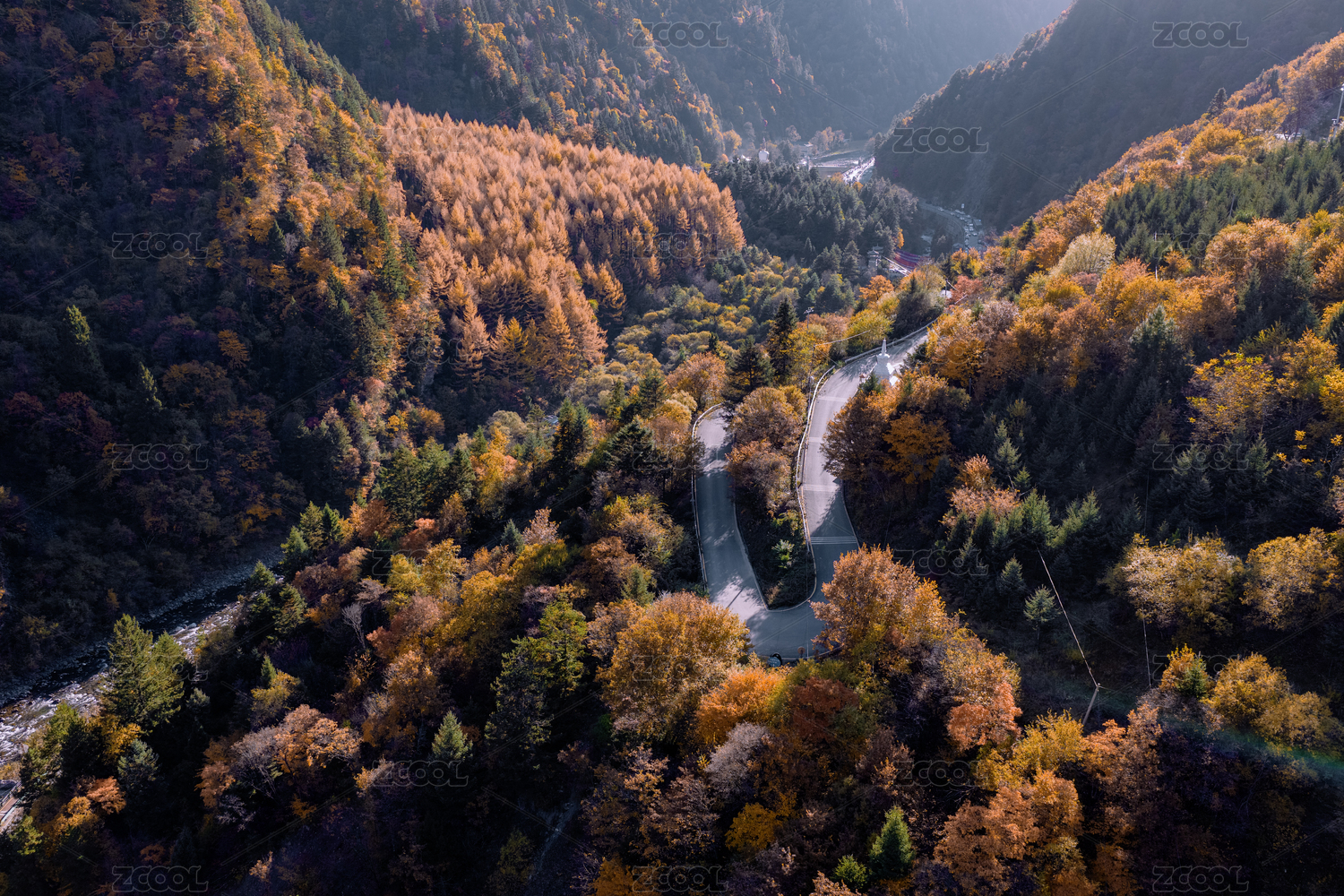 中国四川邓生沟到卧龙镇350国道彩林秋色