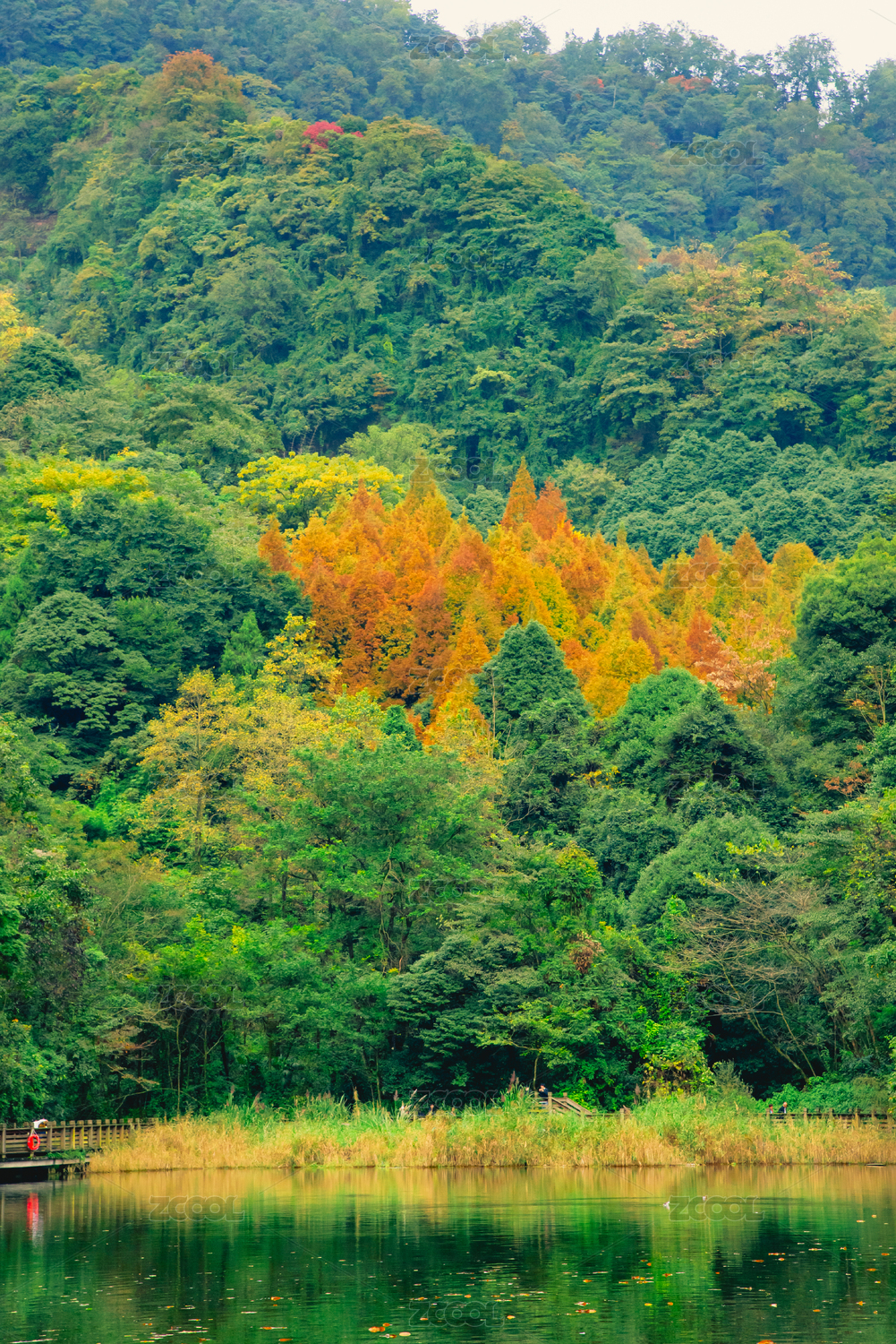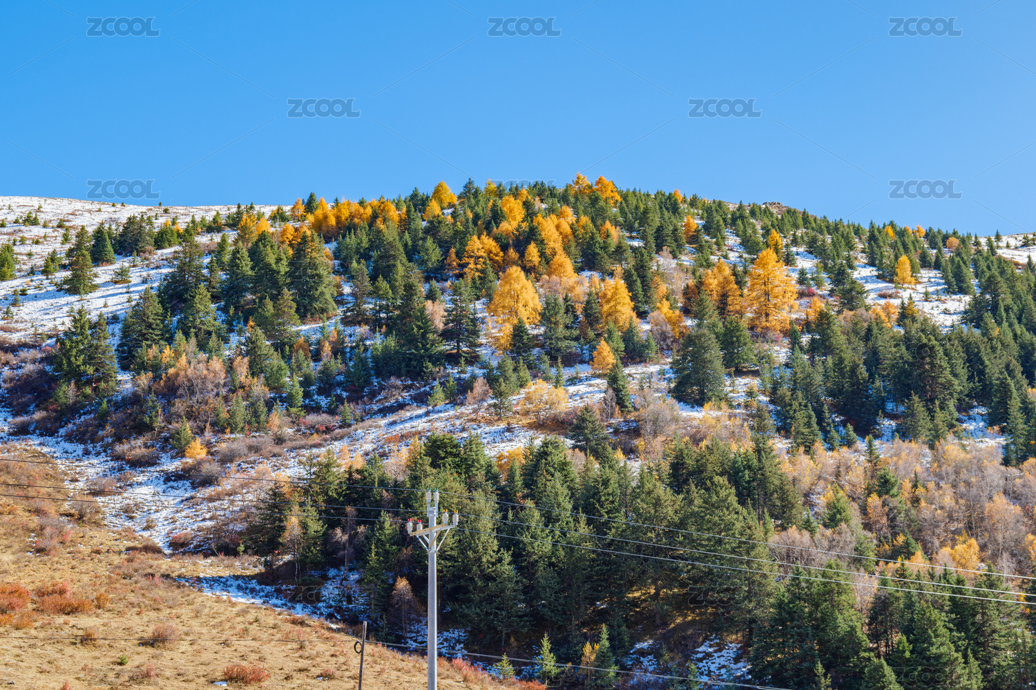 中国四川阿坝卧龙镇深秋的彩林秋色
