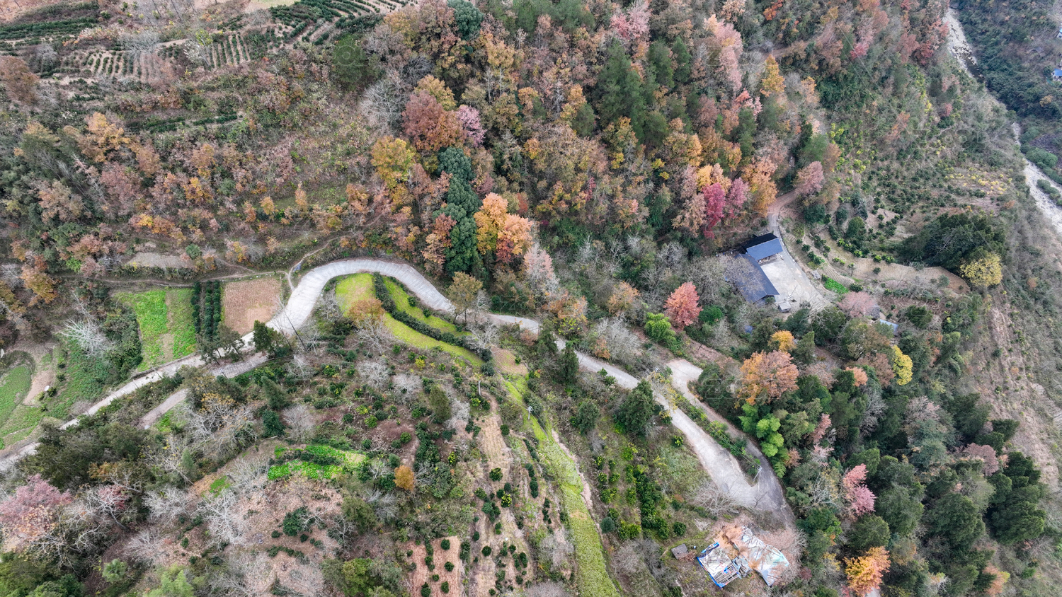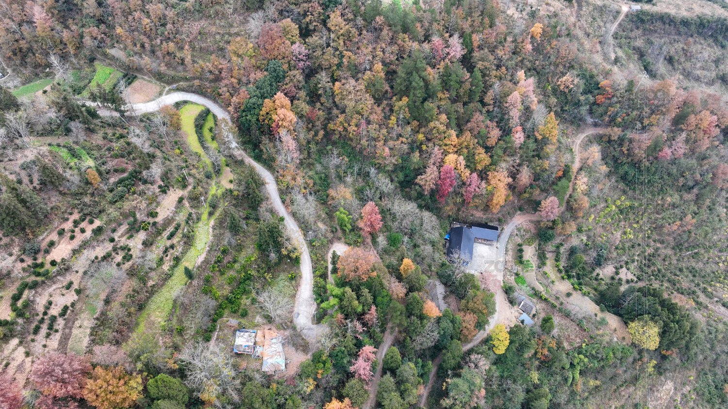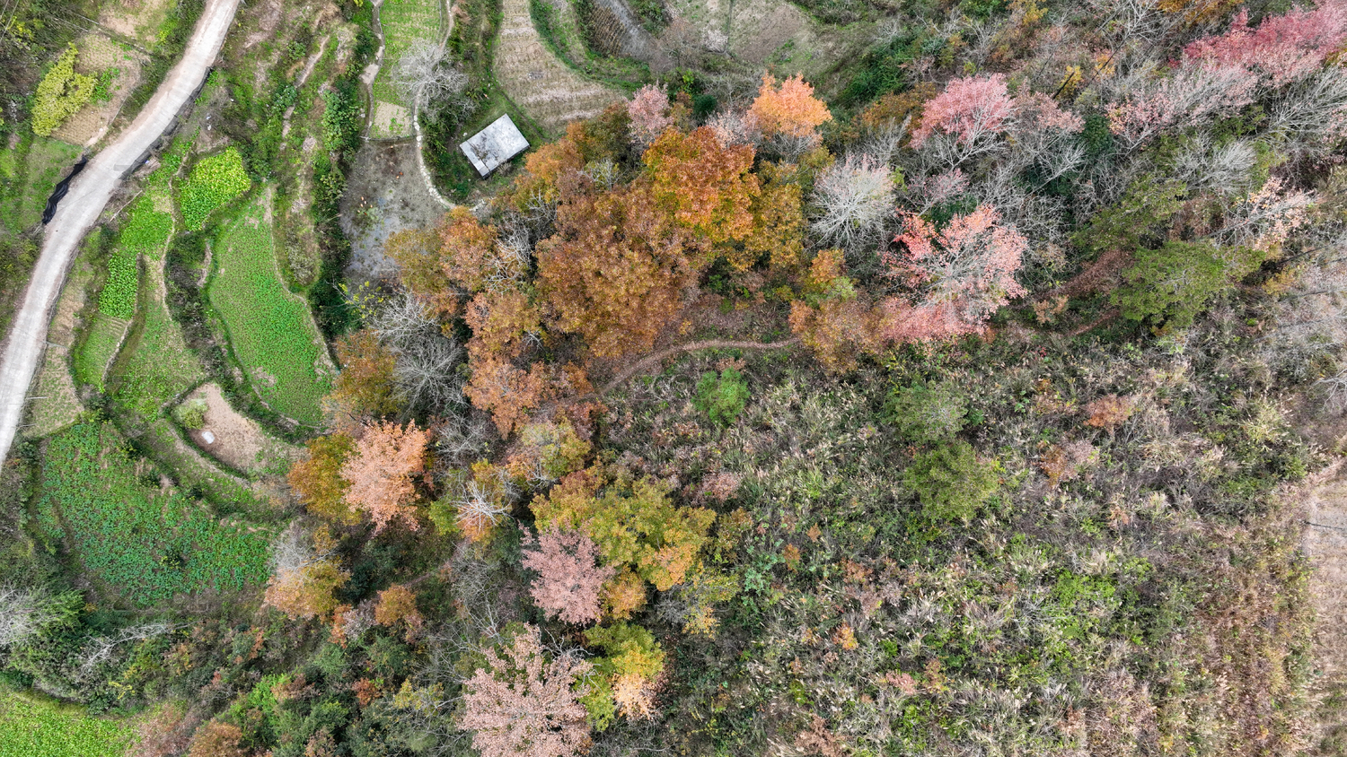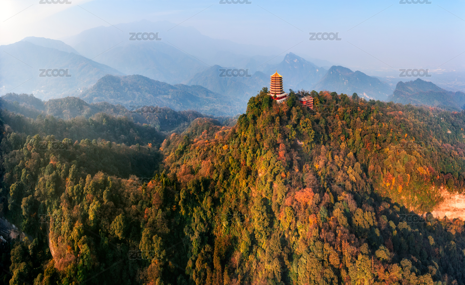 中国四川成都青城山老君阁冬季彩林风光航拍