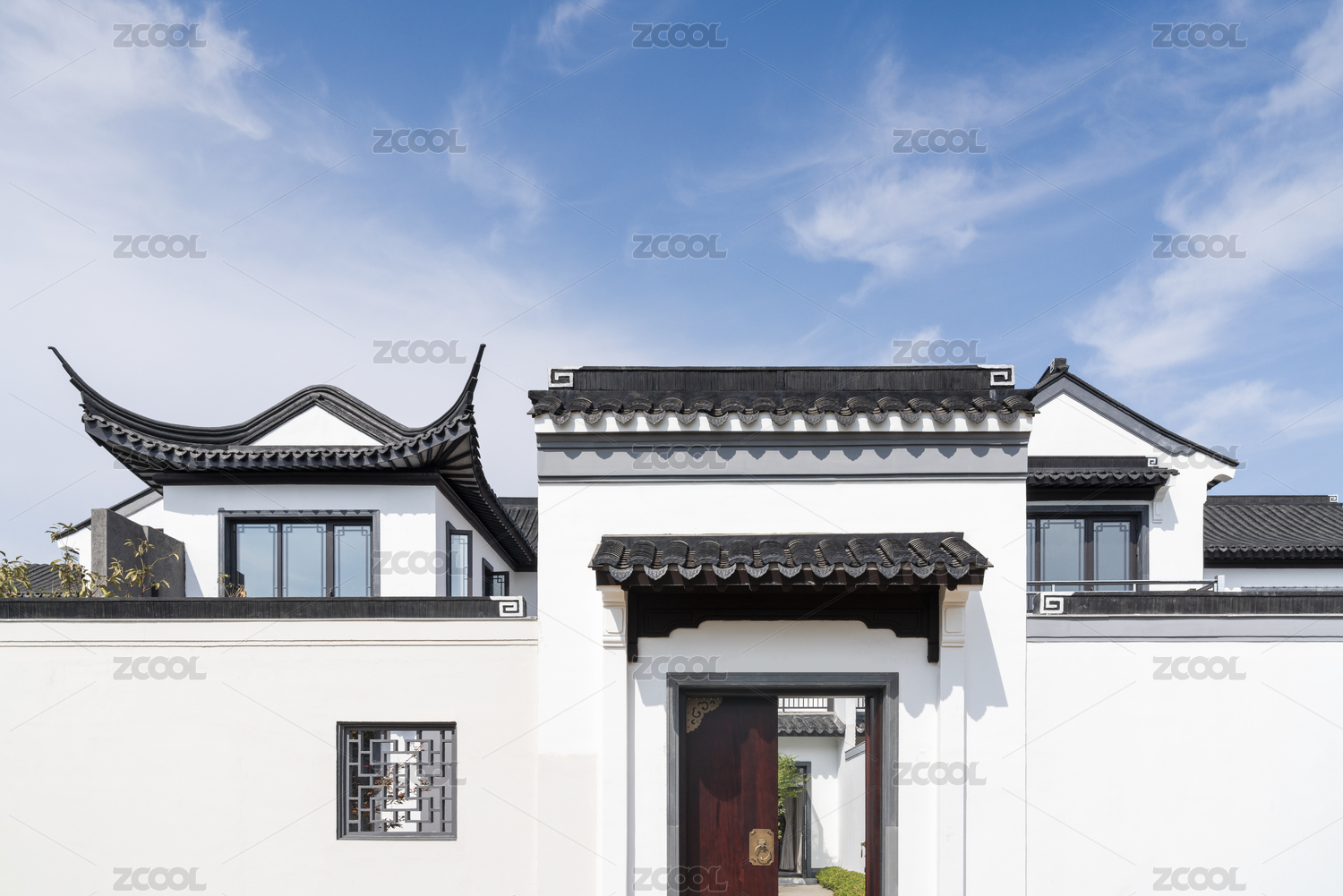 江南庭院徽派建筑白墙灰瓦马头墙