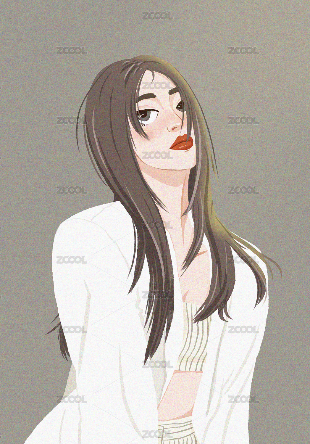 杂志风女性人物 手绘插画