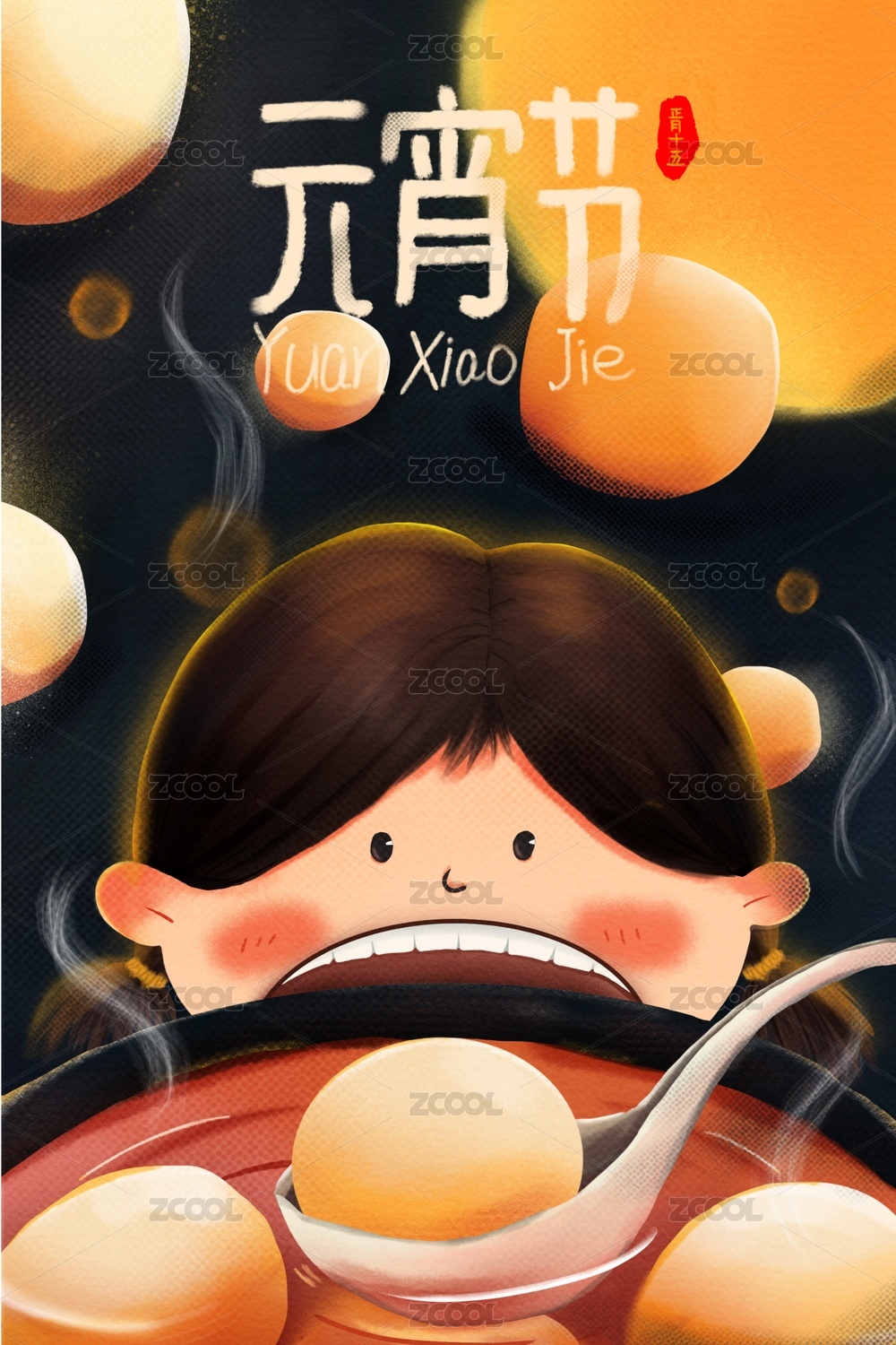 可爱卡通元宵节手绘插画