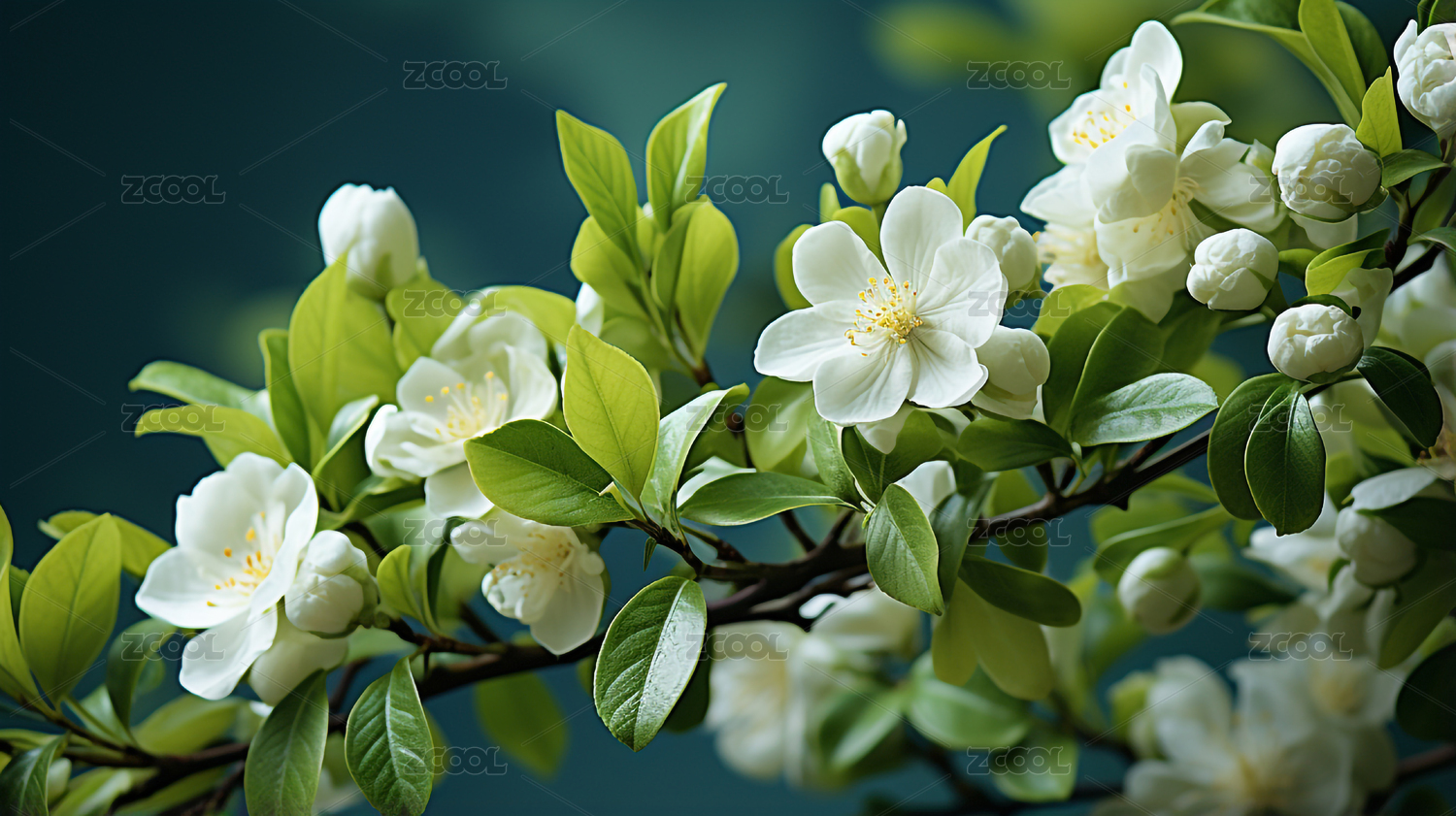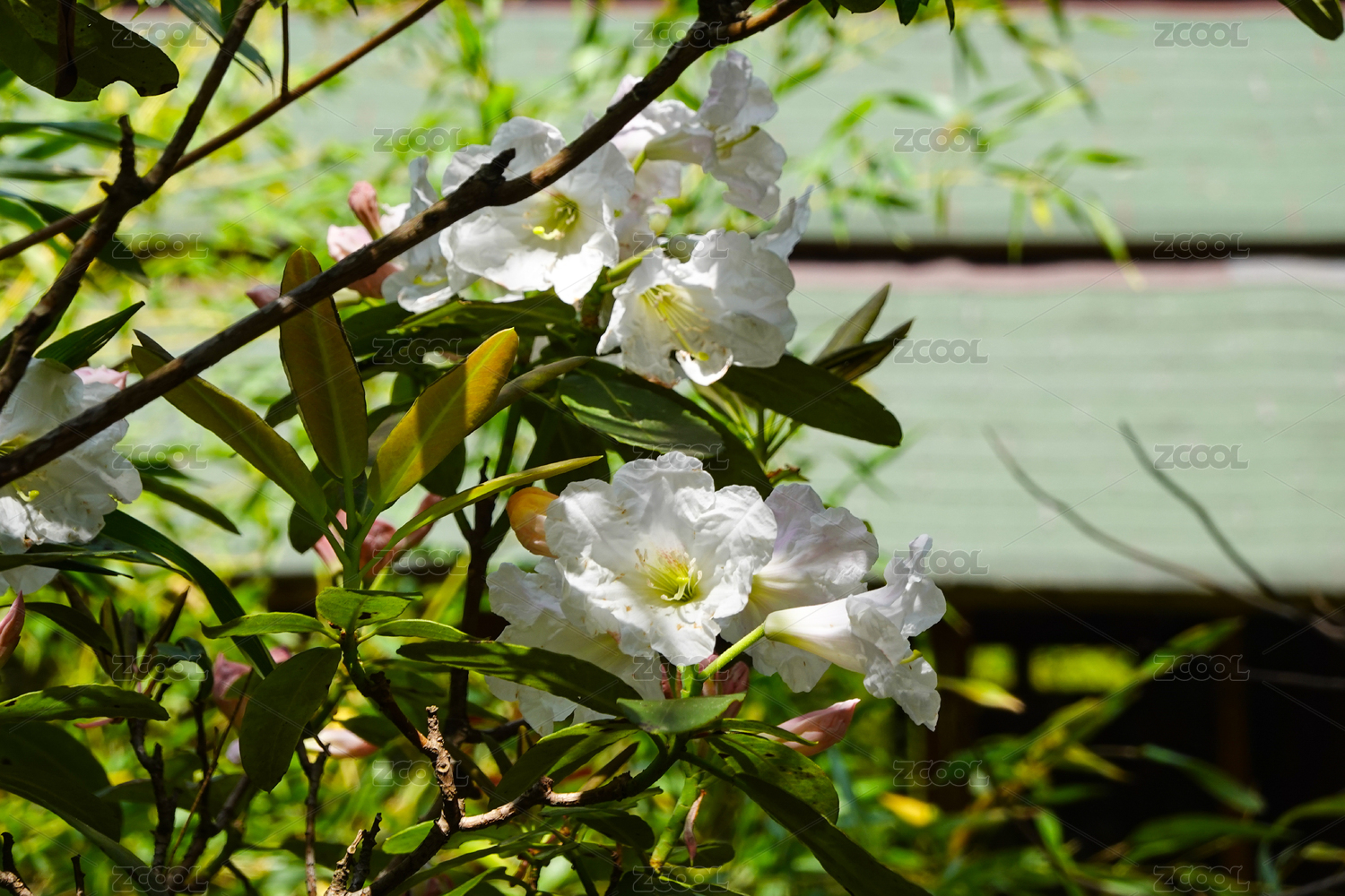 云南腾冲火山地质公园清新蓝天白云白花绿枝