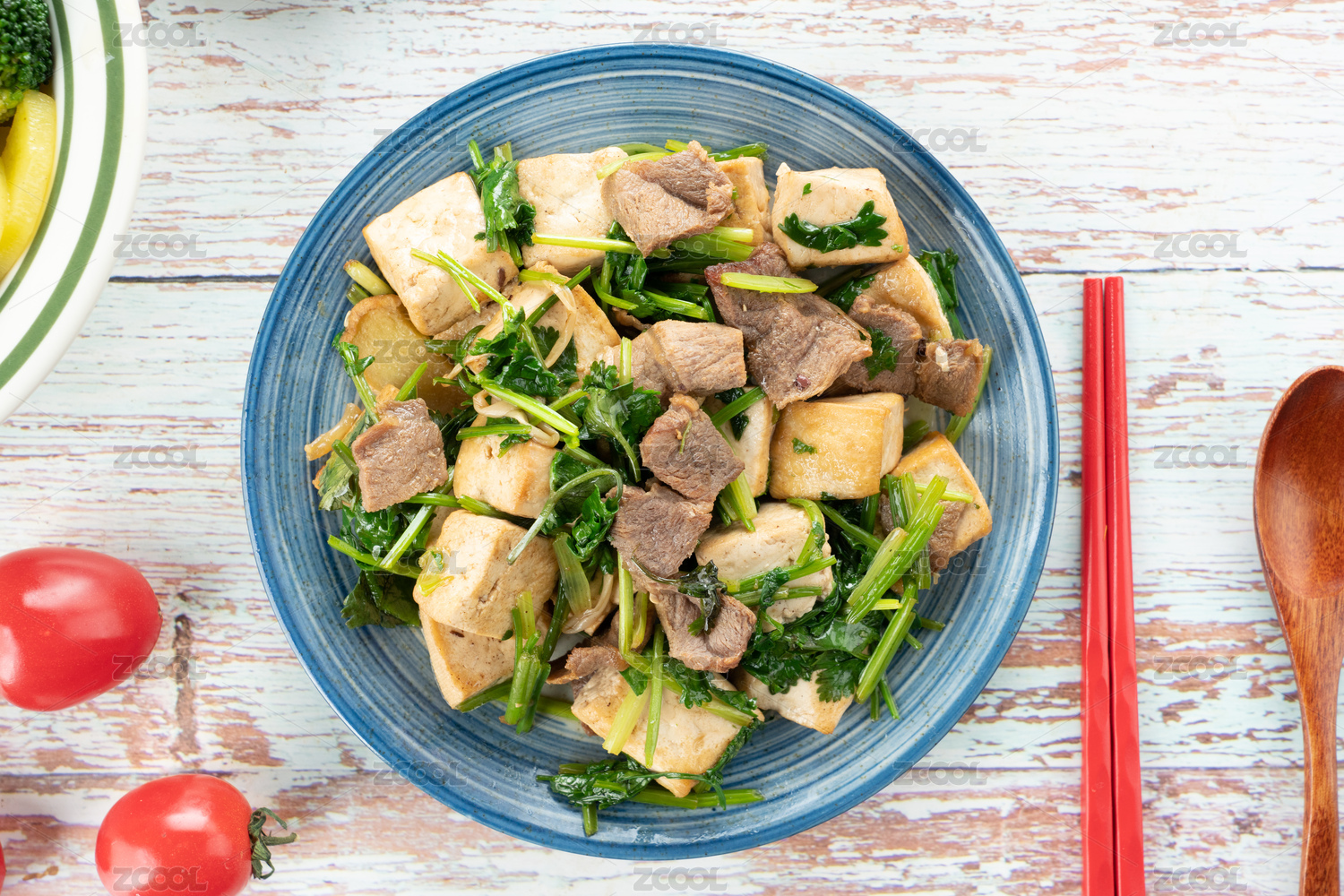 香菜豆腐炒肉丝