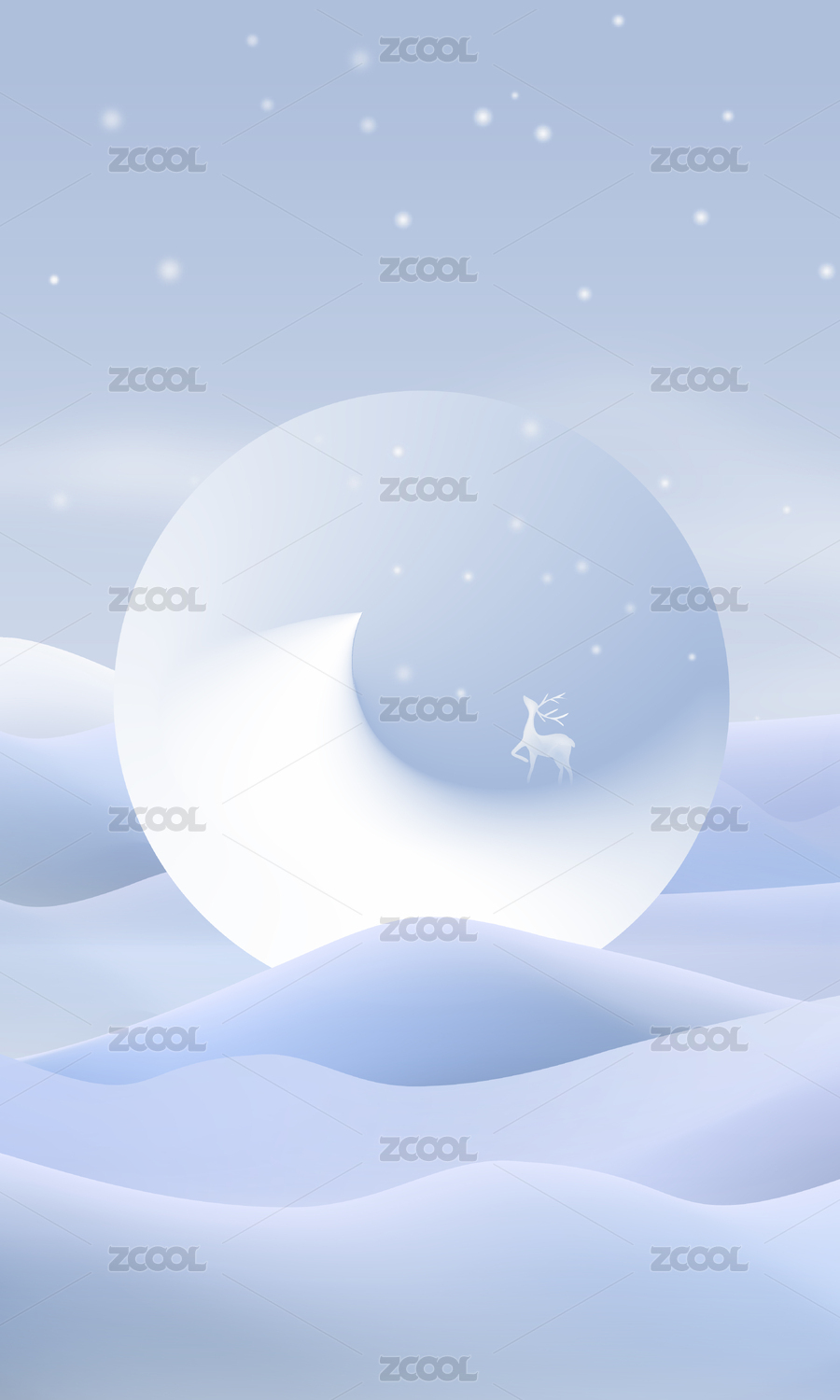 冬日抽象月亮麋鹿雪景竖版