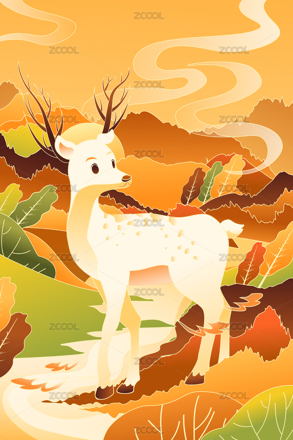 林中麋鹿创意手绘插画
