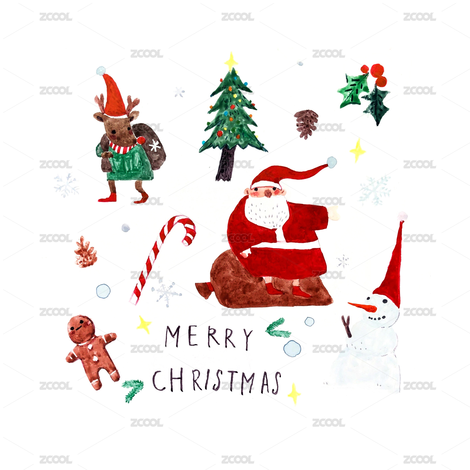圣诞节圣诞树圣诞老人雪人麋鹿玩具