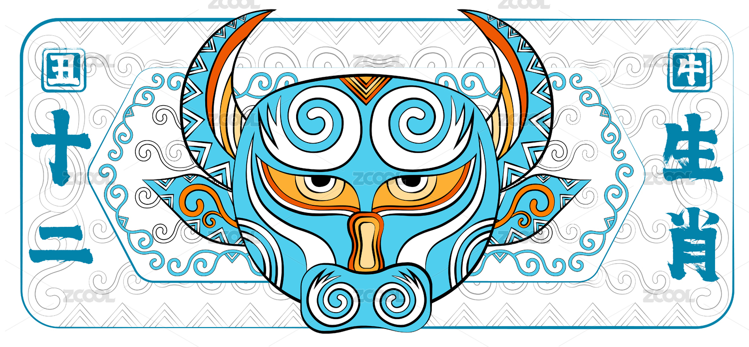 国潮十二生肖丑牛时尚印花装饰纹样卡通形象