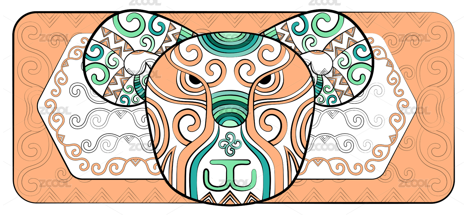 潮流中国风羊十二生肖时尚印花纹样矢量插画