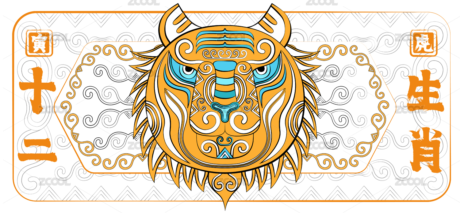 国潮十二生肖寅虎时尚印花装饰纹样卡通形象