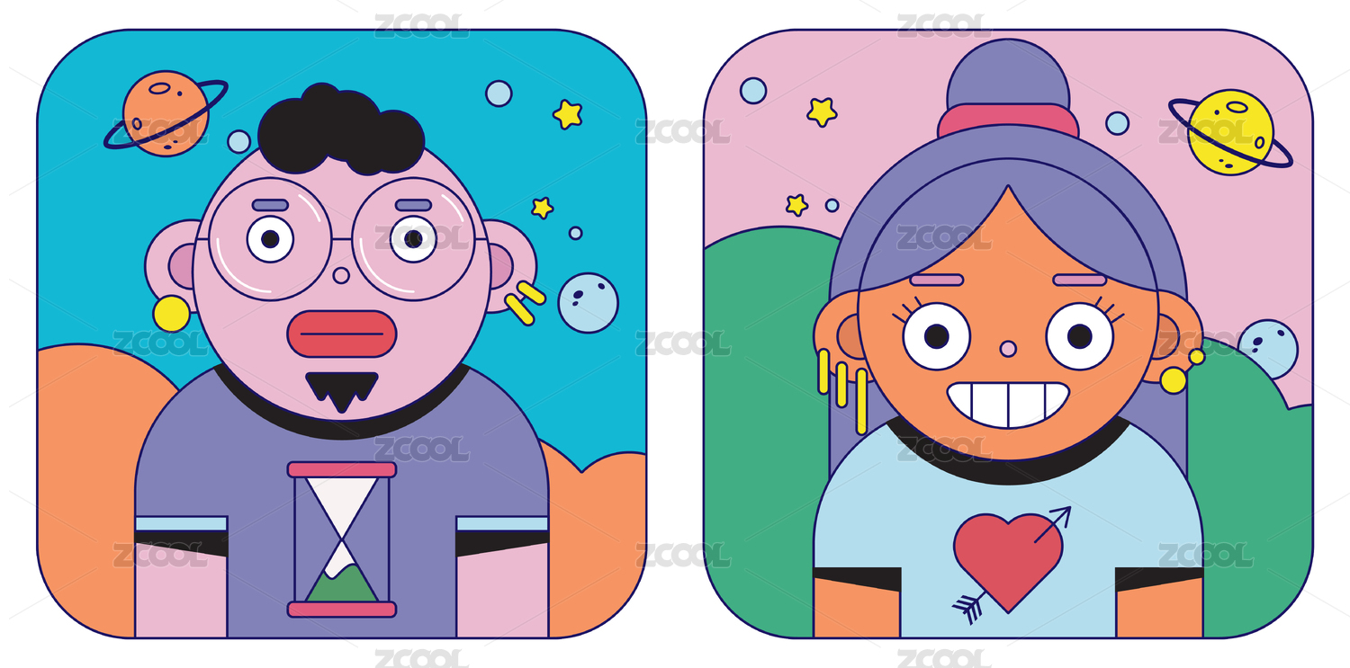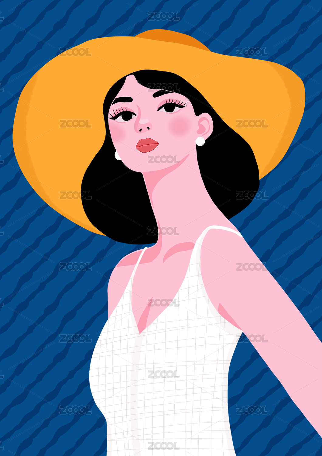 时尚女性扁平装饰画肖像画插画图案印花素材