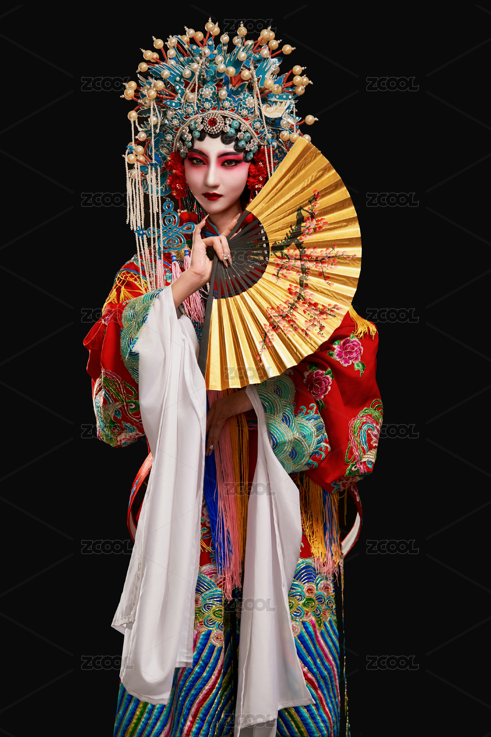 白色背景下国潮新派戏曲装扮的亚洲美女