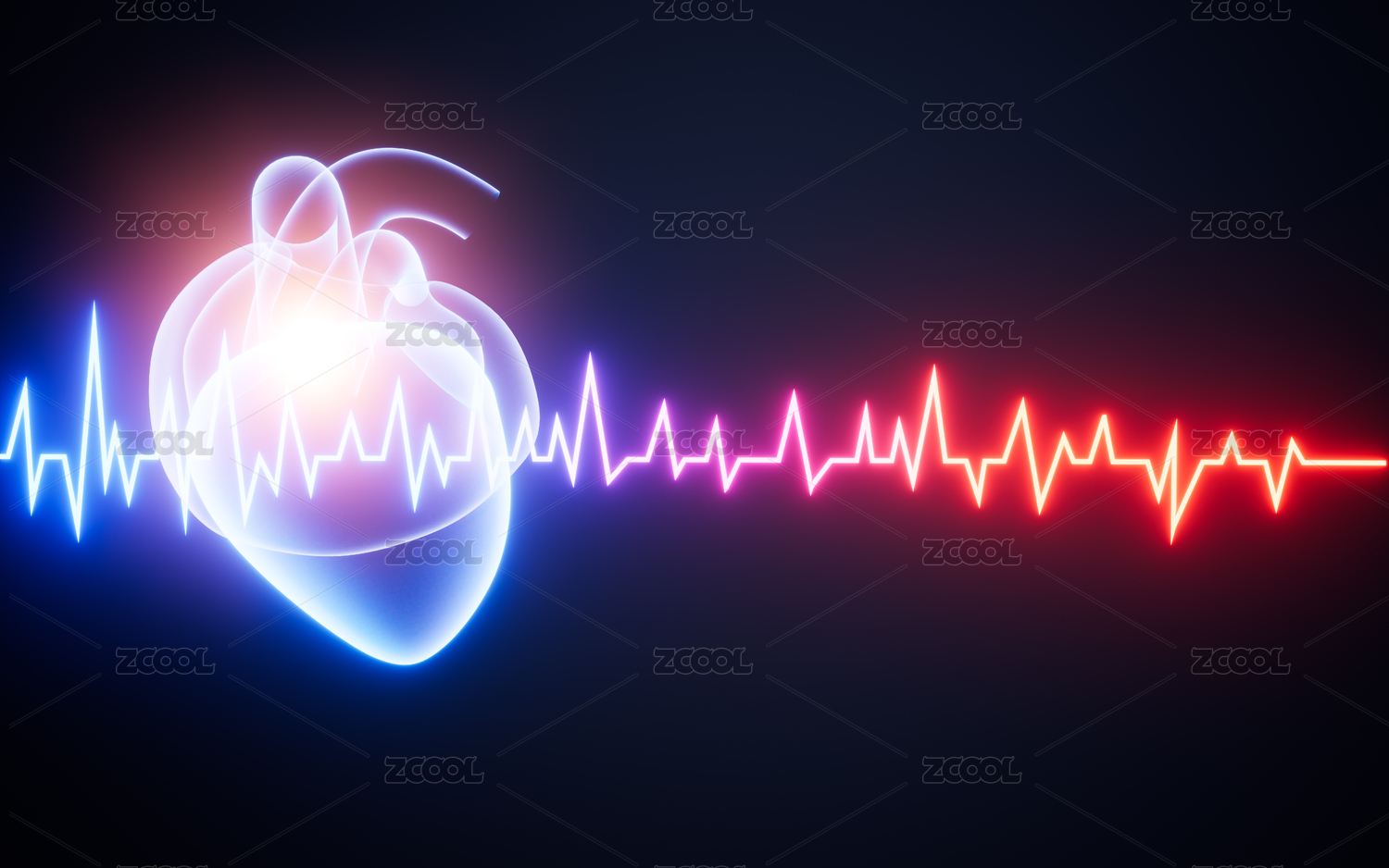 心率符号与霓虹灯光效果3D渲染